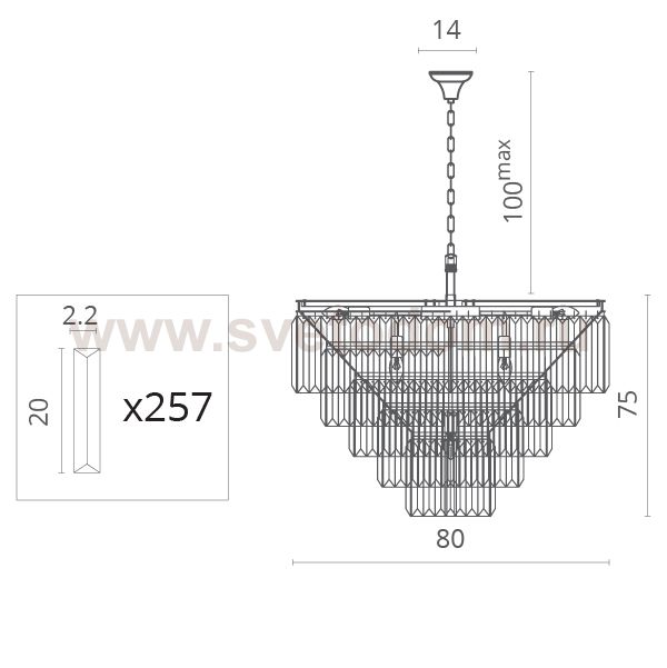 Характеризует подвесную систему светильника. Данную длину возможно изменять: дополнять или сокращать в пределах указанных данных.