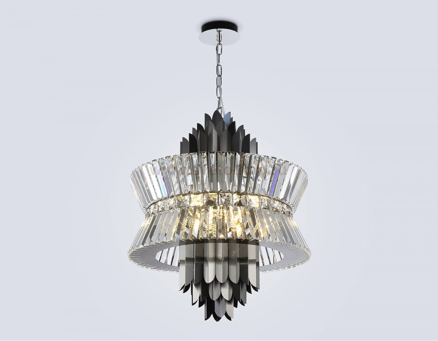 Подвесная люстра из коллекции HIGH LIGHT. Модель LH41020 представлена в современном стиле Арт-деко. Светильник выполнен в черном цвете и декорирован превосходным прозрачным хрусталем, каркас изготовлен из металла. Для данной модели подойдут лампы с цоколем Е14. Светильник будет прекрасным дополнением в гостиной или спальне.