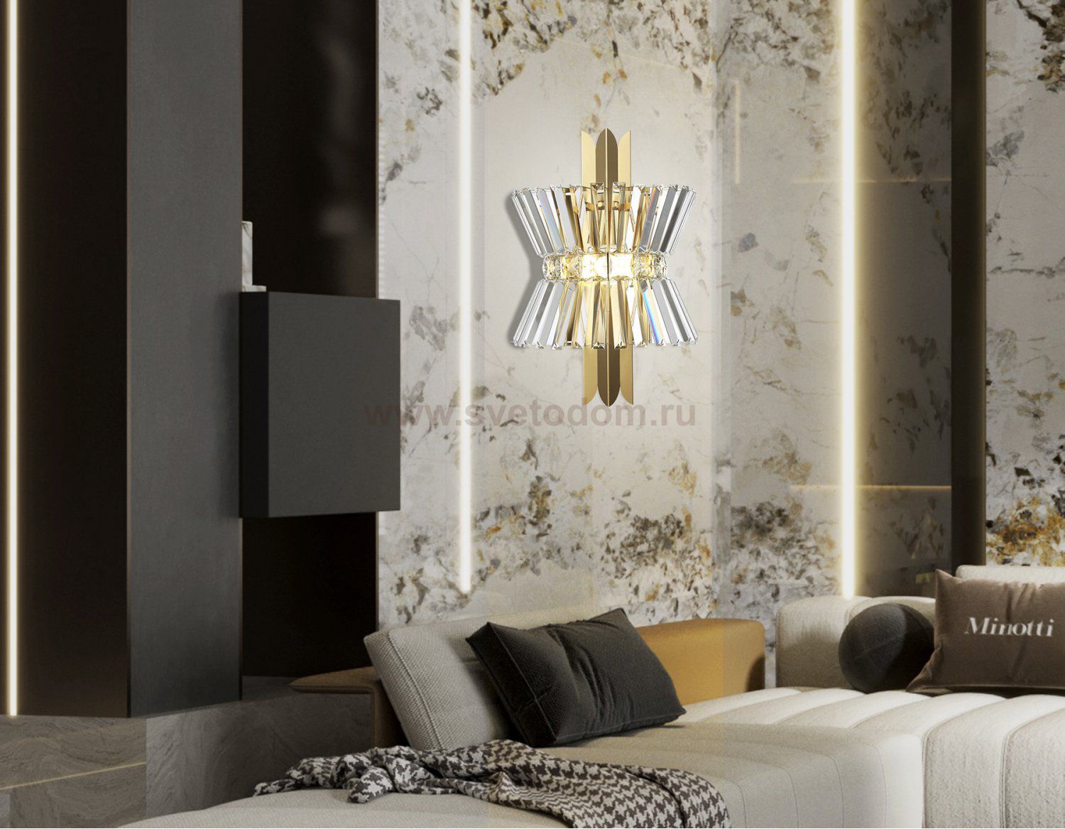 Настенный светильник из коллекции HIGH LIGHT. Модель LH41029 представлена в современном стиле Ар-деко. Светильник выполнен в цвете латунь и декорирован превосходным прозрачным хрусталем, каркас изготовлен из металла. Для данной модели подойдут лампы с цоколем Е14. Светильник будет прекрасным дополнением в гостиной или спальне.