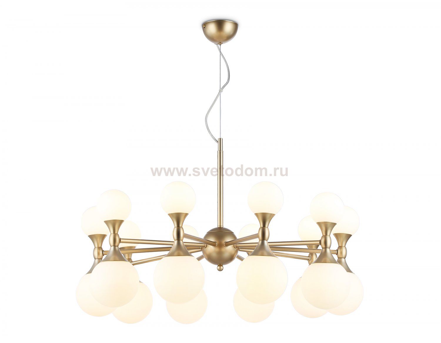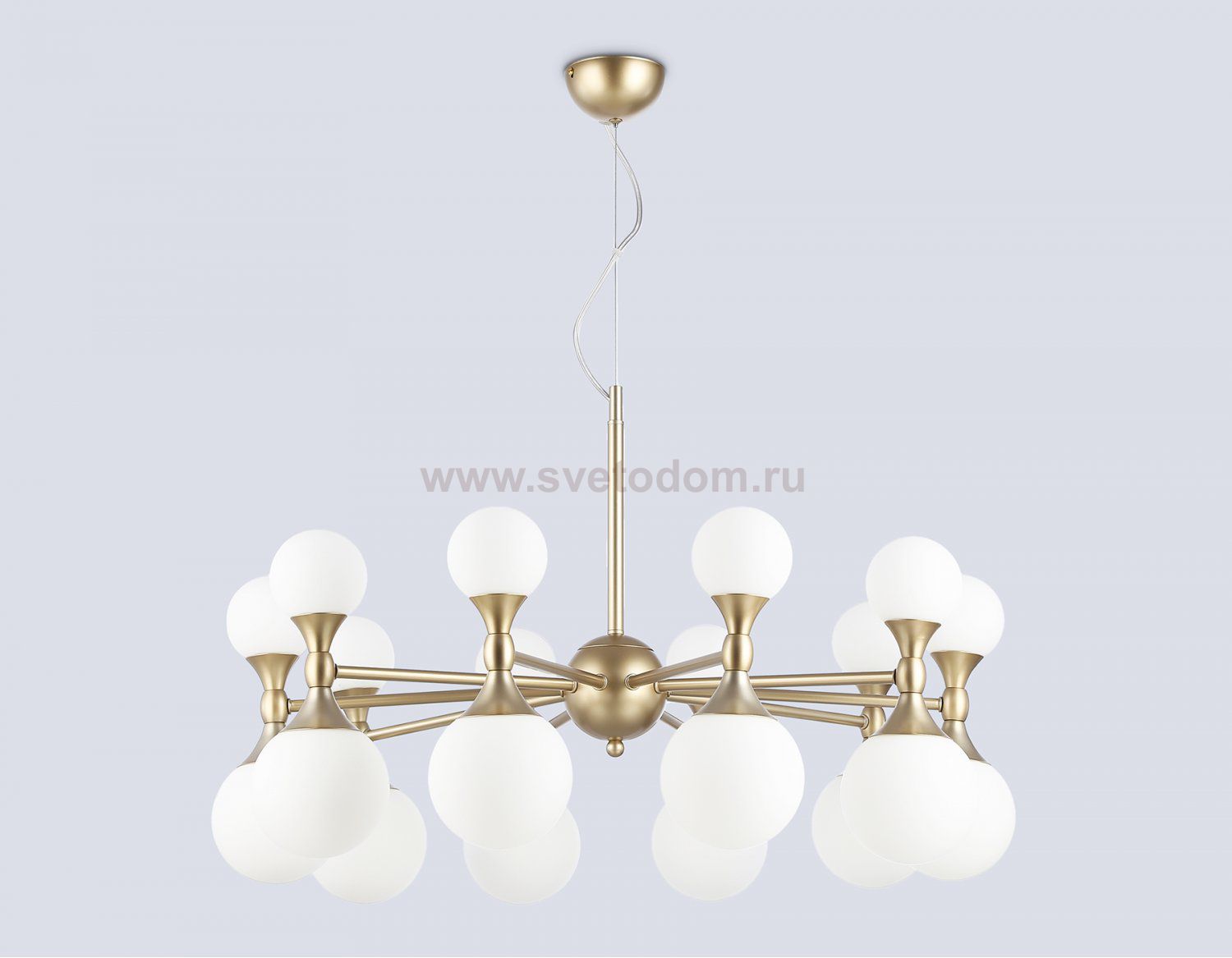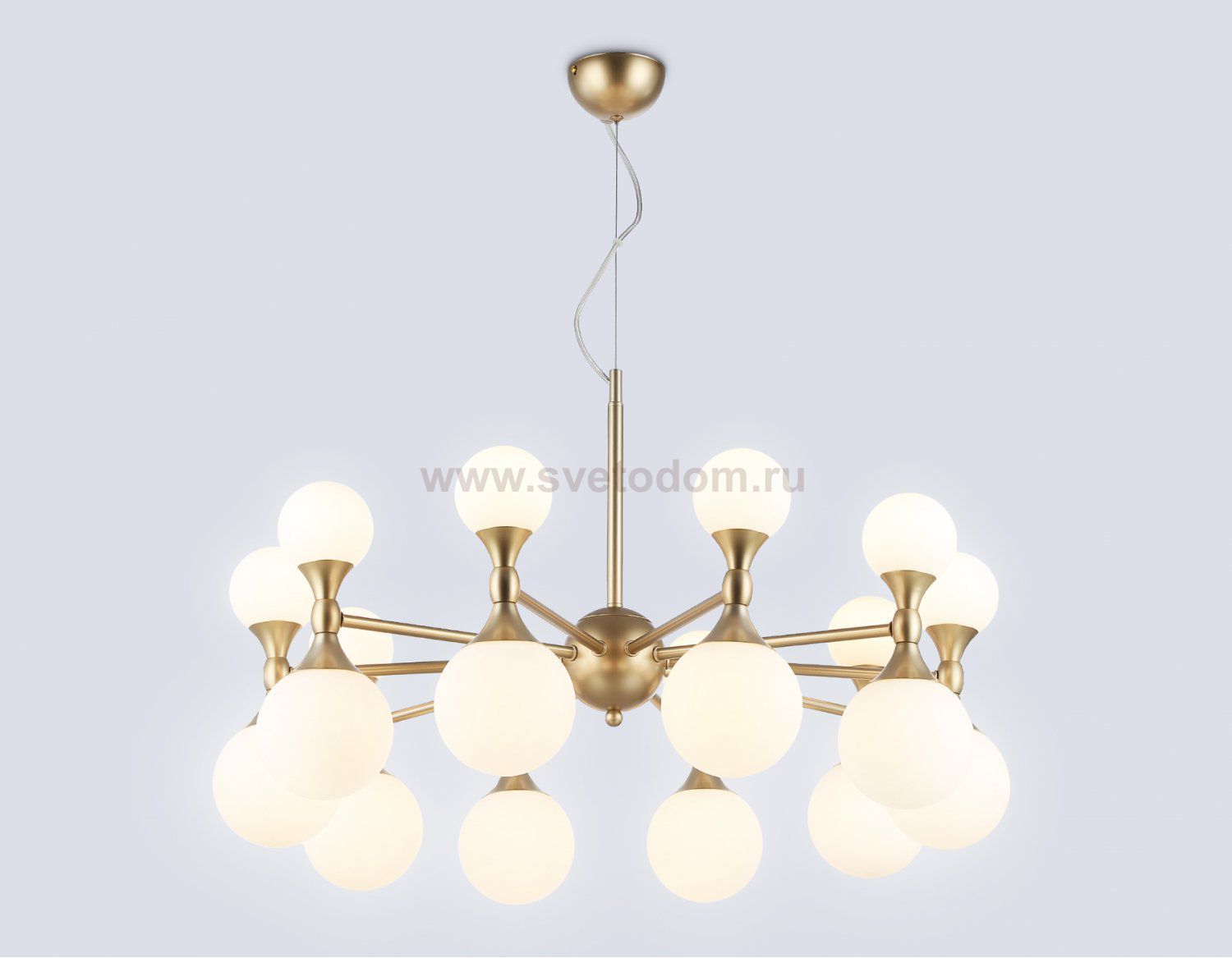 Подвесная люстра из коллекции HIGH LIGHT. Модель LH51051 представлена в стиле модерн. Люстра выполнена из металлического каркаса цвета золота и стеклянных матовых плафонов. Для данной модели подойдут лампы с цоколем G9. Люстра будет прекрасным дополнением в любом помещении.