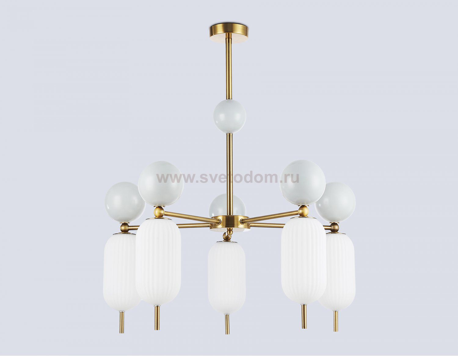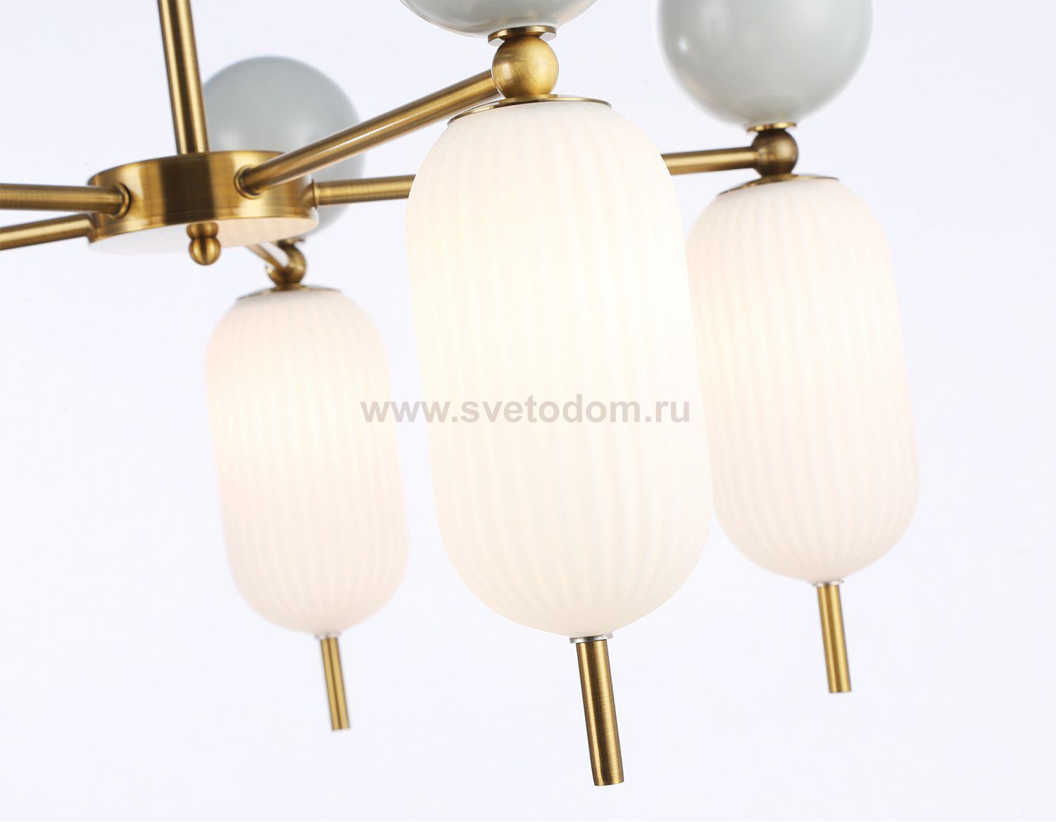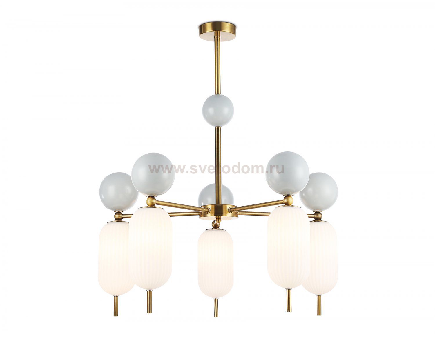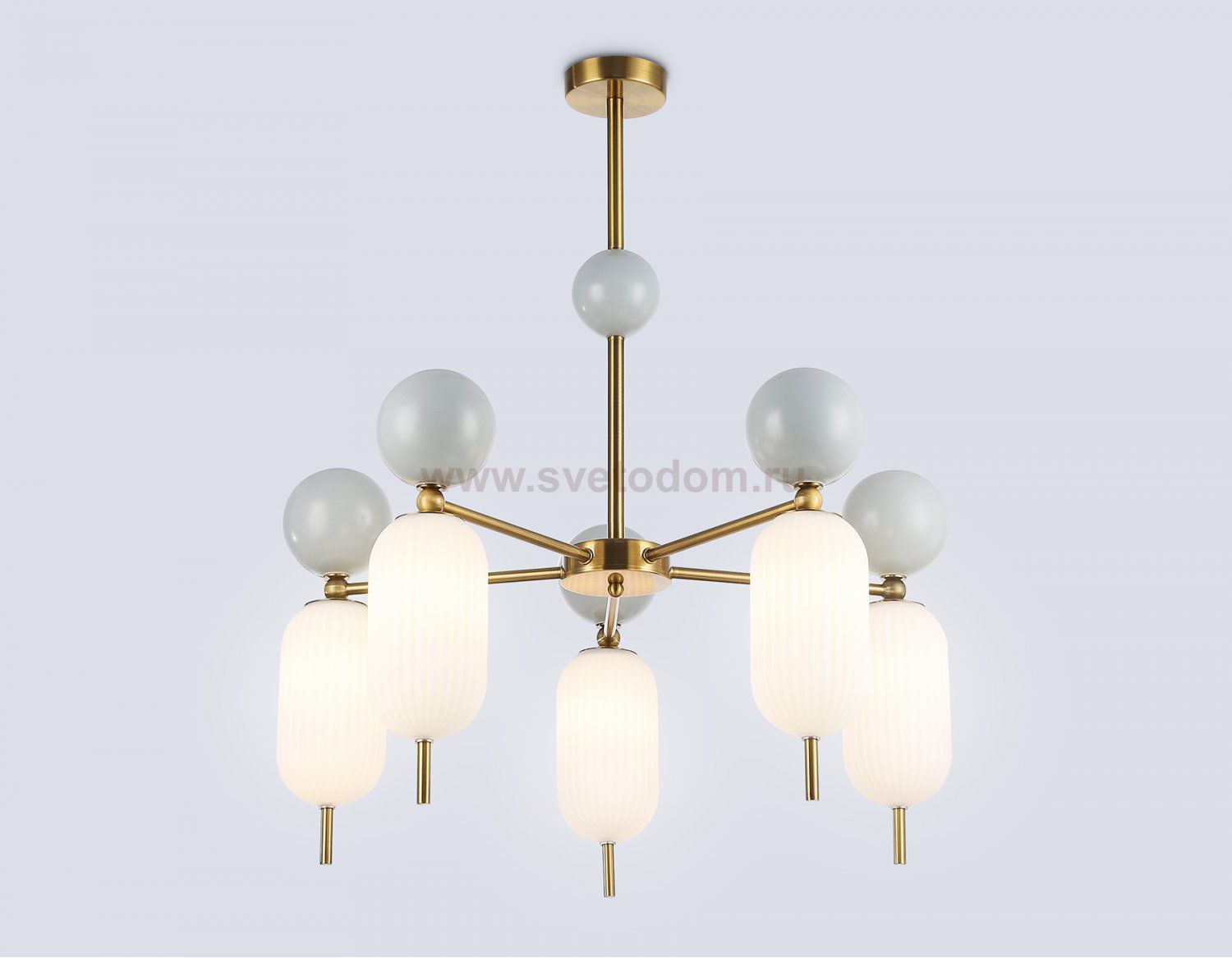 Люстра на штанге из коллекции HIGH LIGHT. Модель LH53104 представлена в стиле модерн. Люстра выполнена из металлического каркаса цвета латунь, стеклянных матовых плафонов и декорирована керамическими элементами. Для данной модели подойдут лампы с цоколем G9. Люстра будет прекрасным дополнением в любом помещении.