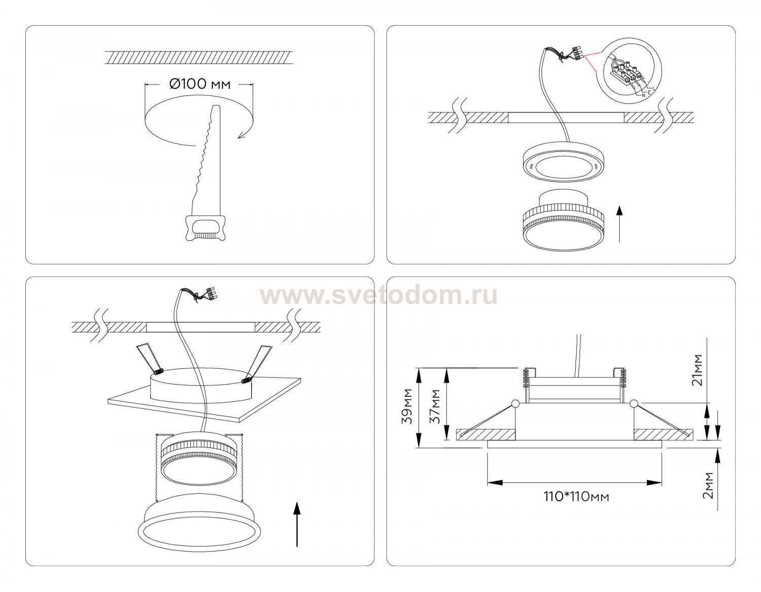 Светильник встраиваемый IP44 с высокой степенью пылевлагозащиты Гарантия