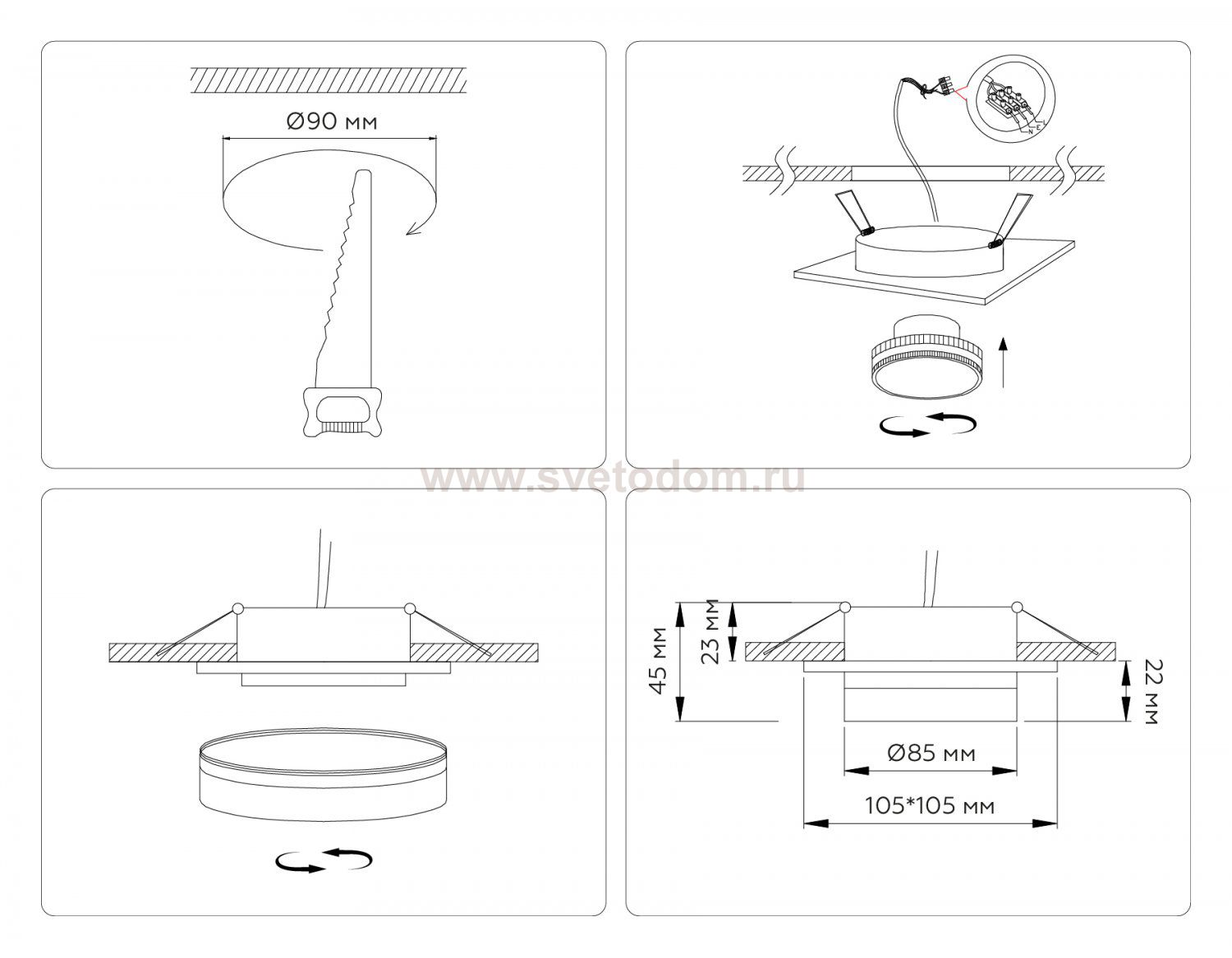 Светильник встраиваемый IP44 с высокой степенью пылевлагозащиты Гарантия
