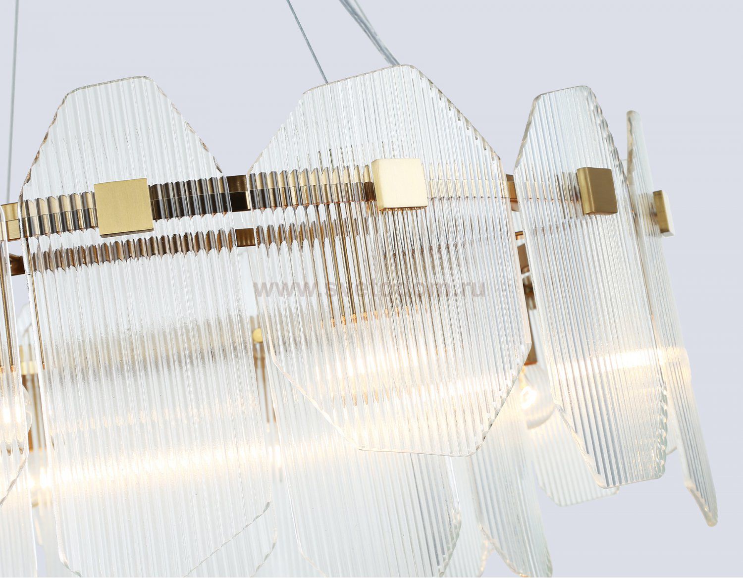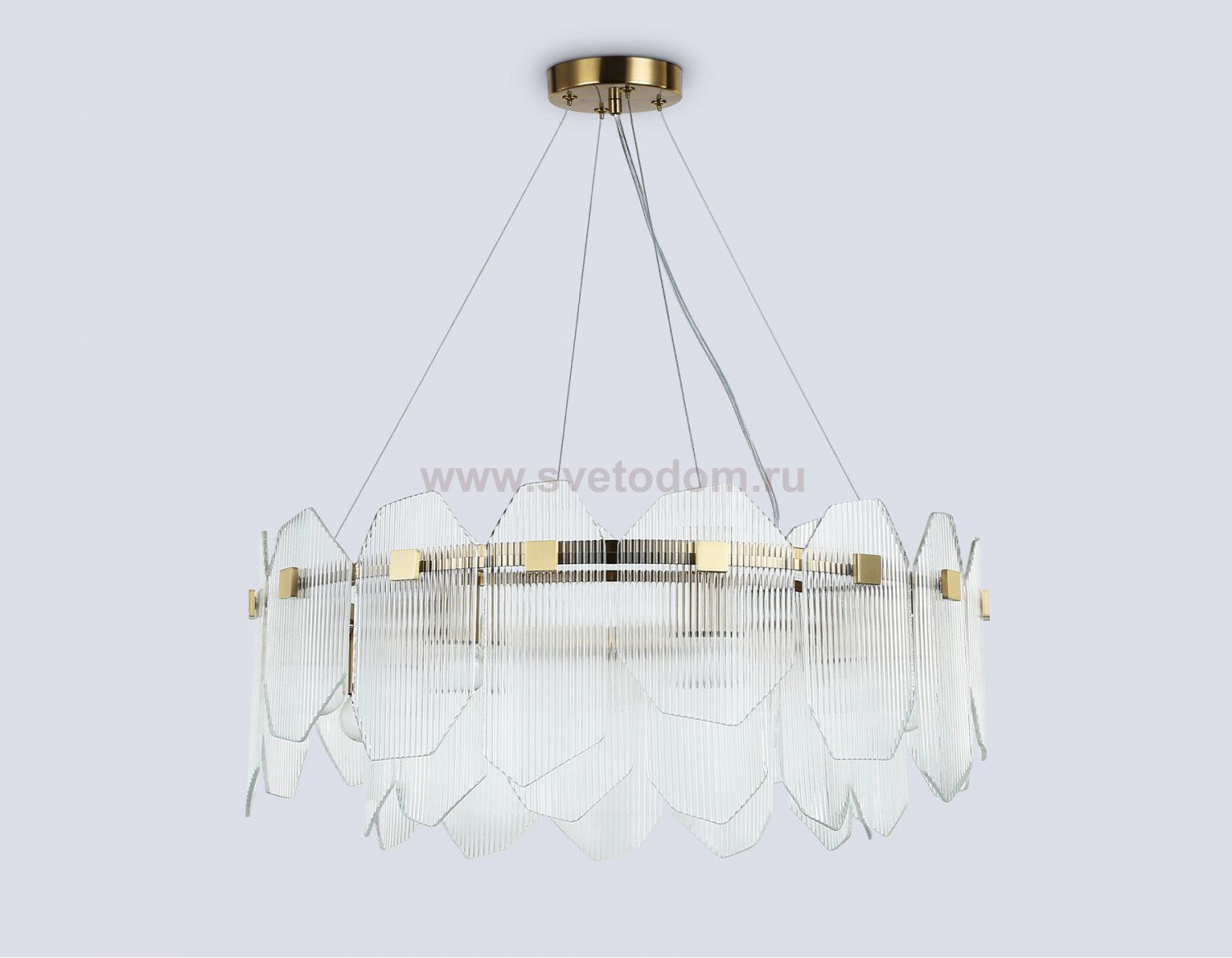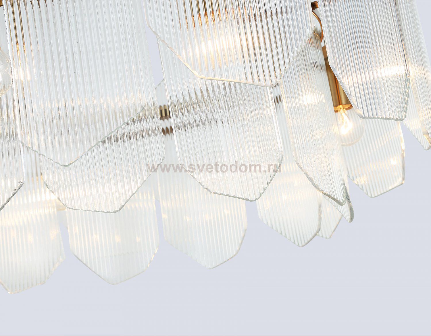 Подвесная люстра из коллекции HIGH LIGHT. Модель LH31253 представлена в стиле неоклассика. Люстра выполнена из металлического каркаса цвета латунь со стеклянным прозрачным дизайнерским плафоном. Имеет восемь цоколей Е14. Люстра будет прекрасным дополнением в любом помещении.