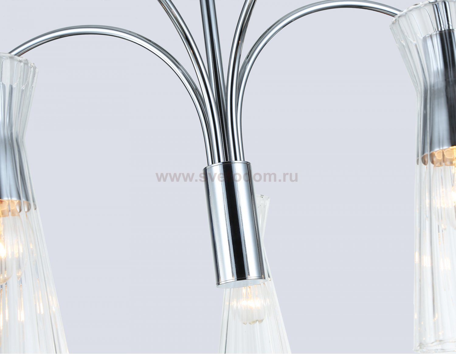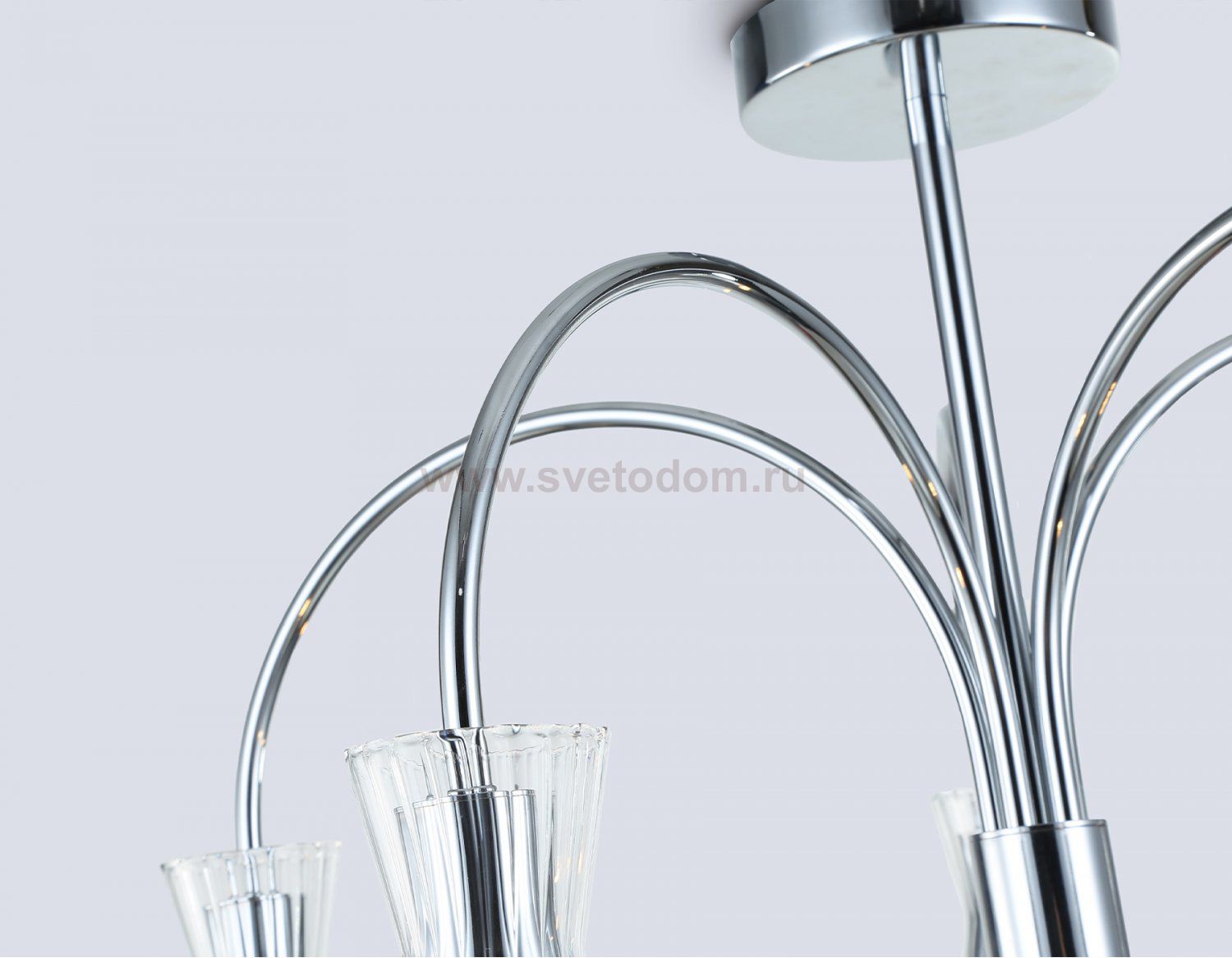 Подвесная люстра на штанге из коллекции HIGH LIGHT. Модель LH55651 представлена в стиле модерн. Люстра выполнена из металлического каркаса цвета хром и стеклянных прозрачных плафонов. Имеет пять цоколей Е14. Люстра будет прекрасным дополнением в любом помещении.