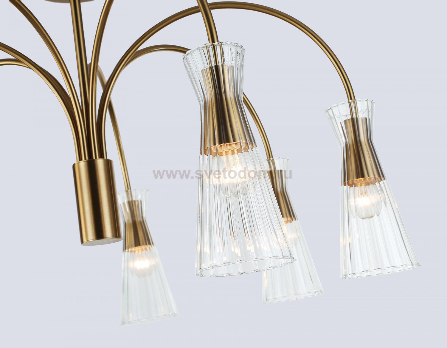 Подвесная люстра на штанге из коллекции HIGH LIGHT. Модель LH55703 представлена в стиле модерн. Люстра выполнена из металлического каркаса цвета латунь и стеклянных прозрачных плафонов. Имеет семь цоколей Е14. Люстра будет прекрасным дополнением в любом помещении.