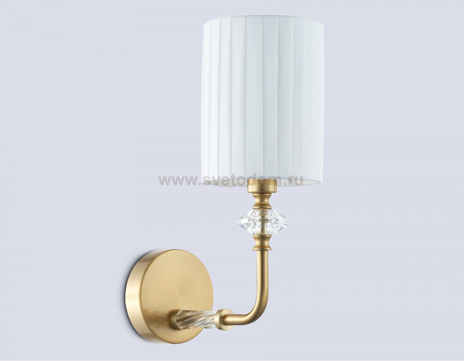 Настенный светильник из коллекции HIGH LIGHT. Модель LH71506 представлена в стиле неоклассика. Светильник выполнен из металлического каркаса цвета латунь, белого тканевого плафона, а также декорирован изысканным хрусталем и стеклянными элементами. Для данной модели подойдет сменная лампа с цоколем Е14. Светильник будет прекрасным дополнением в любом помещении.