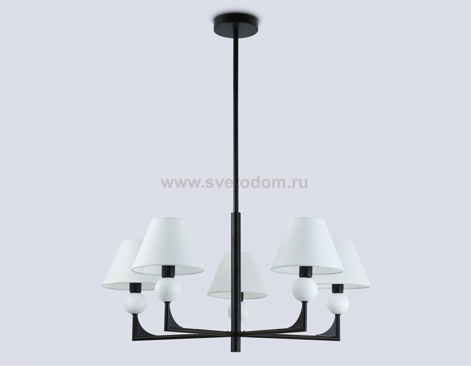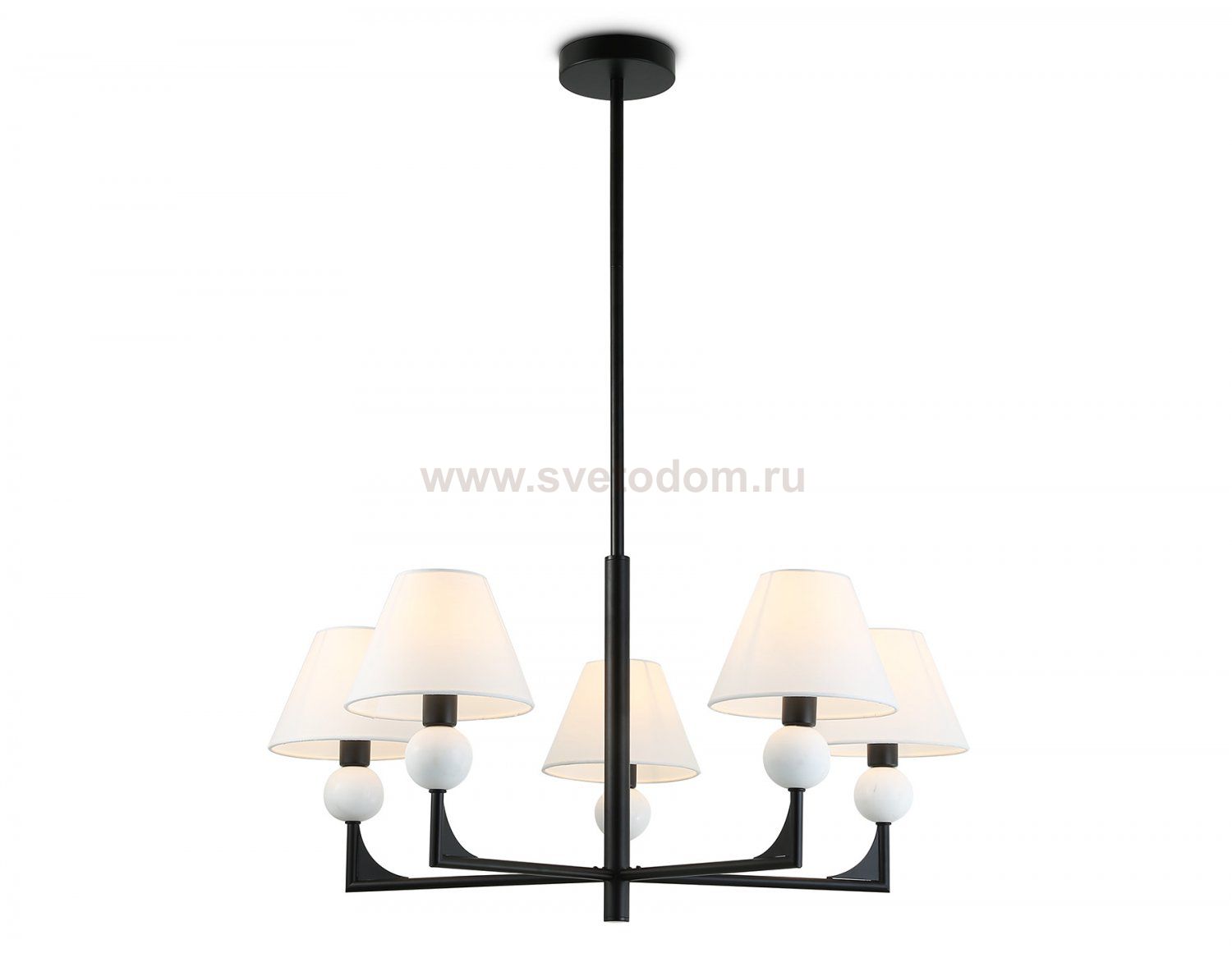 Подвесная люстра на штанге из коллекции HIGH LIGHT. Модель LH75153 представлена в стиле неоклассика. Люстра выполнена из металлического каркаса черного цвета с белыми плафонами из ткани, а также декорирована натуральным камнем. Имеет пять цоколей Е14. Люстра будет прекрасным дополнением в любом помещении.