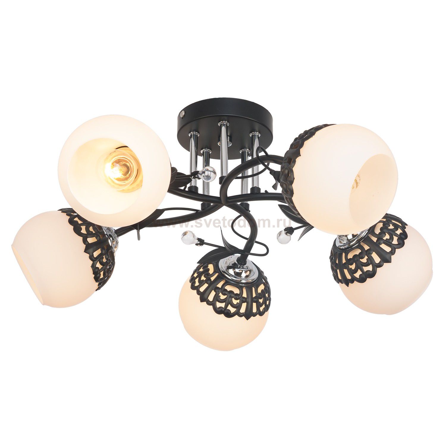 Потолочный светильник 50193/5BK WT от бренда ЭкономСвет. Каркас выполнен из материала металл; цвета: черный и хром. Плафоны (светорассеиватели) выполнены из материала стекло, цвет белый. Цоколь E27 рассчитан на лампы максимальной мощности до 40 Вт, а максимальная площадь освещения составит до 11 м?.