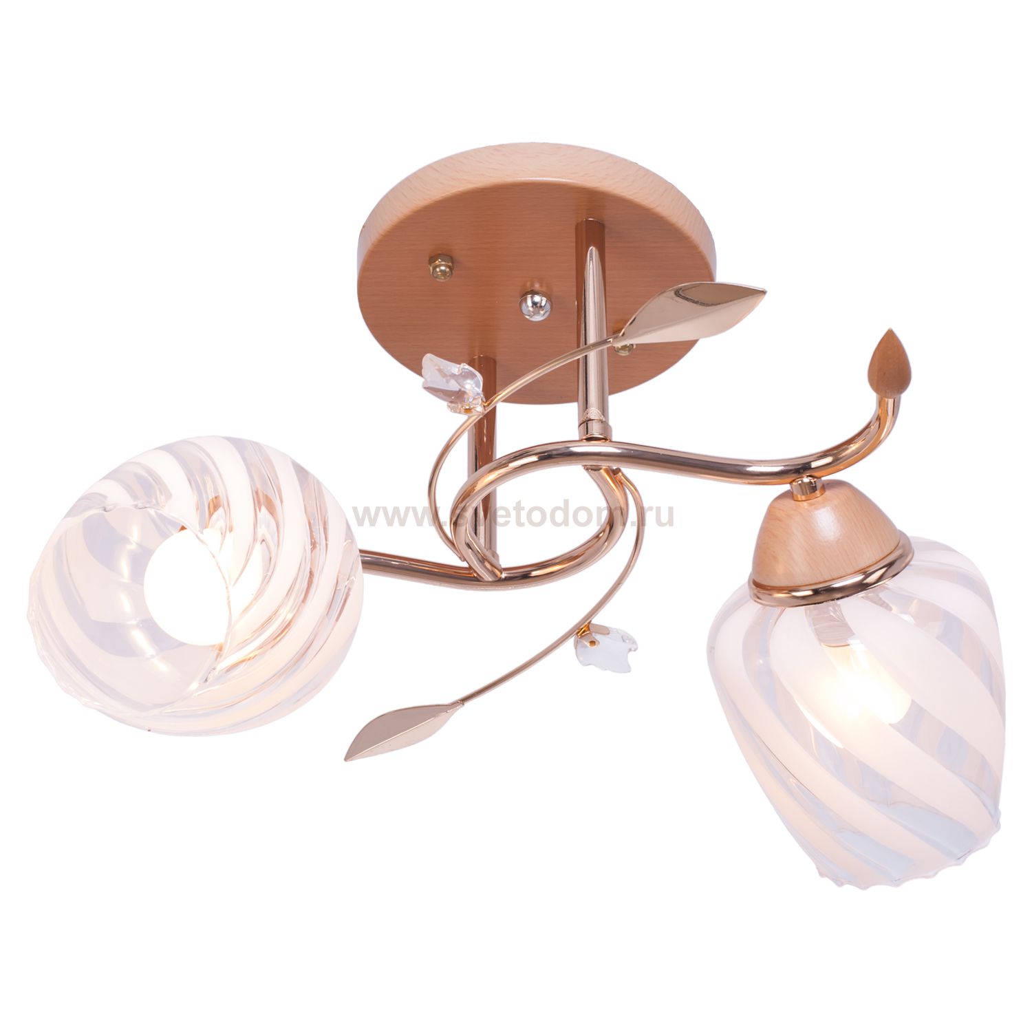 Потолочный светильник 5472/2FGD WT от бренда ЭкономСвет. Каркас выполнен из материала металл; цвета: золото и коричневый. Плафоны (светорассеиватели) выполнены из материала стекло, цвет прозрачный с матовой вставкой. Цоколь E27 рассчитан на лампы максимальной мощности до 40 Вт, а максимальная площадь освещения составит до 4 м?.