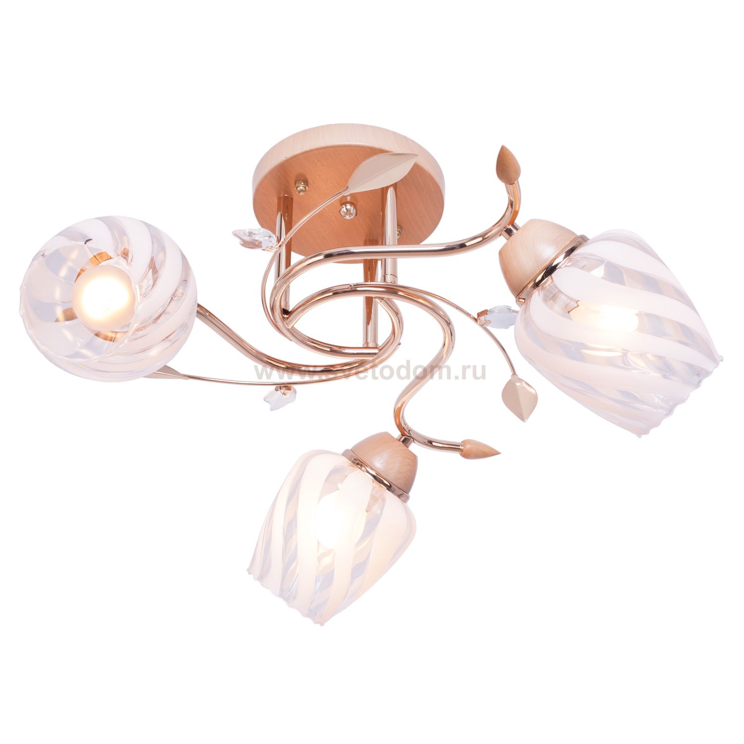 Потолочный светильник 5472/3FGD WT от бренда ЭкономСвет. Каркас выполнен из материалов дерево и металл; цвета: золото и коричневый. Плафоны (светорассеиватели) выполнены из материала стекло, цвет прозрачный с матовой вставкой. Цоколь E27 рассчитан на лампы максимальной мощности до 40 Вт, а максимальная площадь освещения составит до 7 м?.