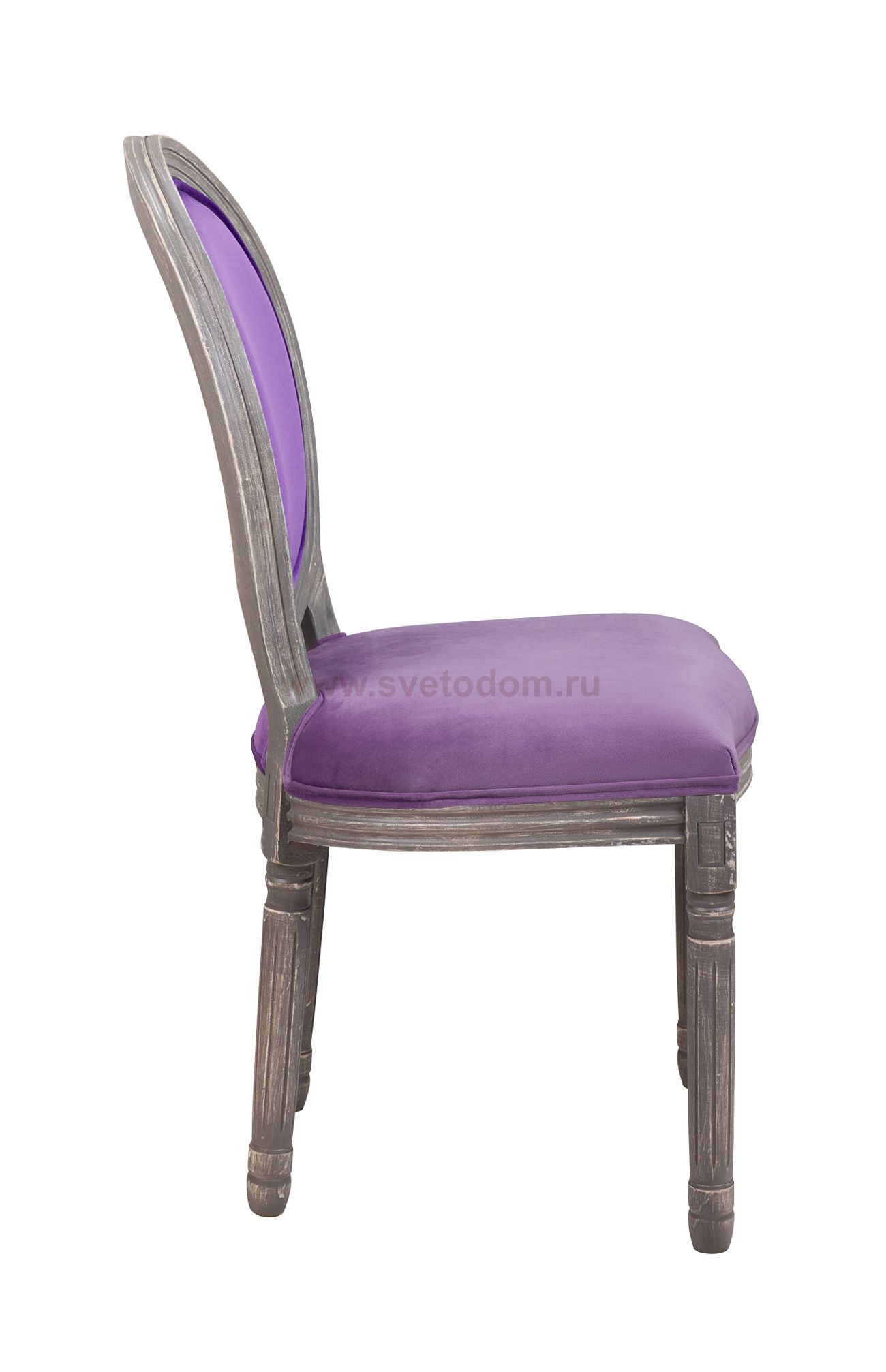 Cтул Volker violet с округлой спинкой напоминающей медальон, выполнен в элегантном классическом французском стиле. Основание модели выполнено из массива каучукового дерева, искусственно состаренного. Такой стул эффектно смотрится как в контрастной, так и в однотонной обстановке.
