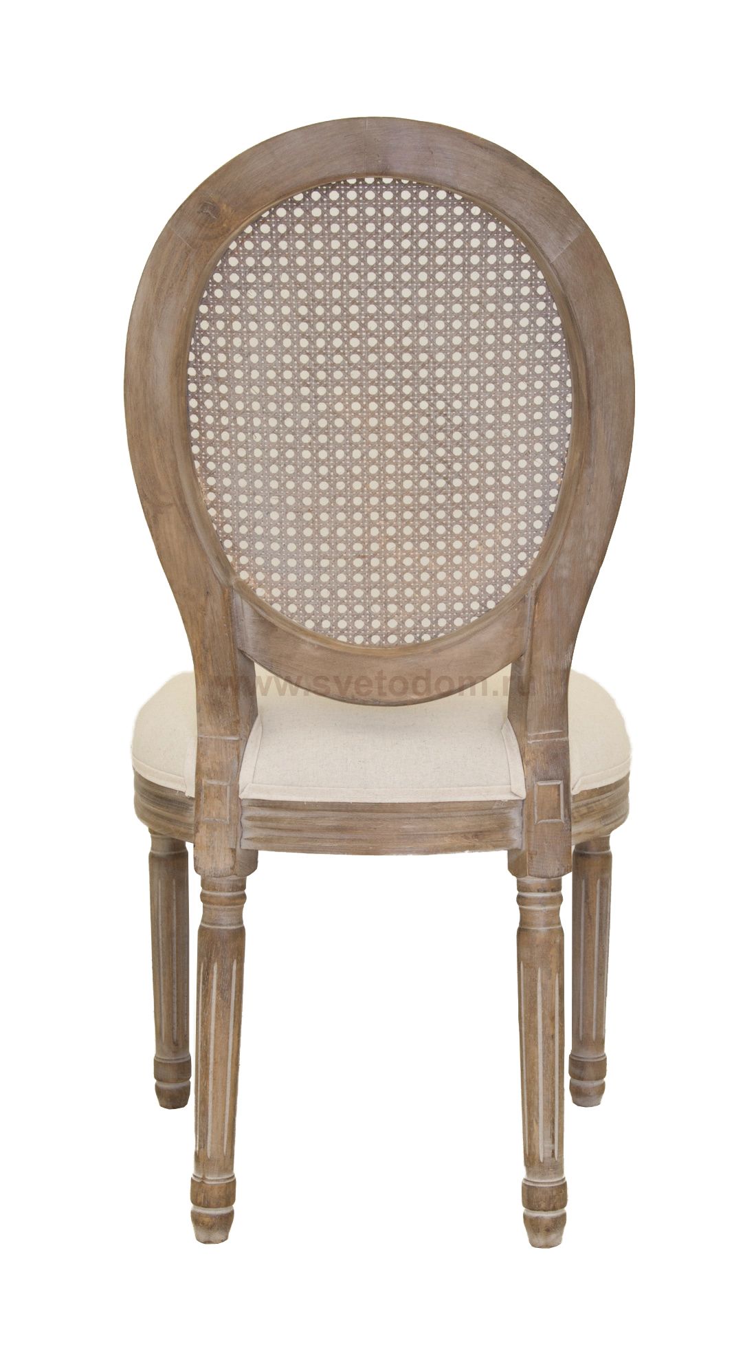 Стул Memos ver.2 в изысканном дизайне, с пышным широким сиденьем, резными ножками и круглой, напоминающей медальон, спинкой, в обрамлении из ротанга. Основание выполнено из массива искусственно состаренного дуба, для изготовления обивки использована прочная льняная ткань бежевого цвета. Небольшой вес модели (7 кг) повышает ее мобильность и упрощает передвижение по помещению.