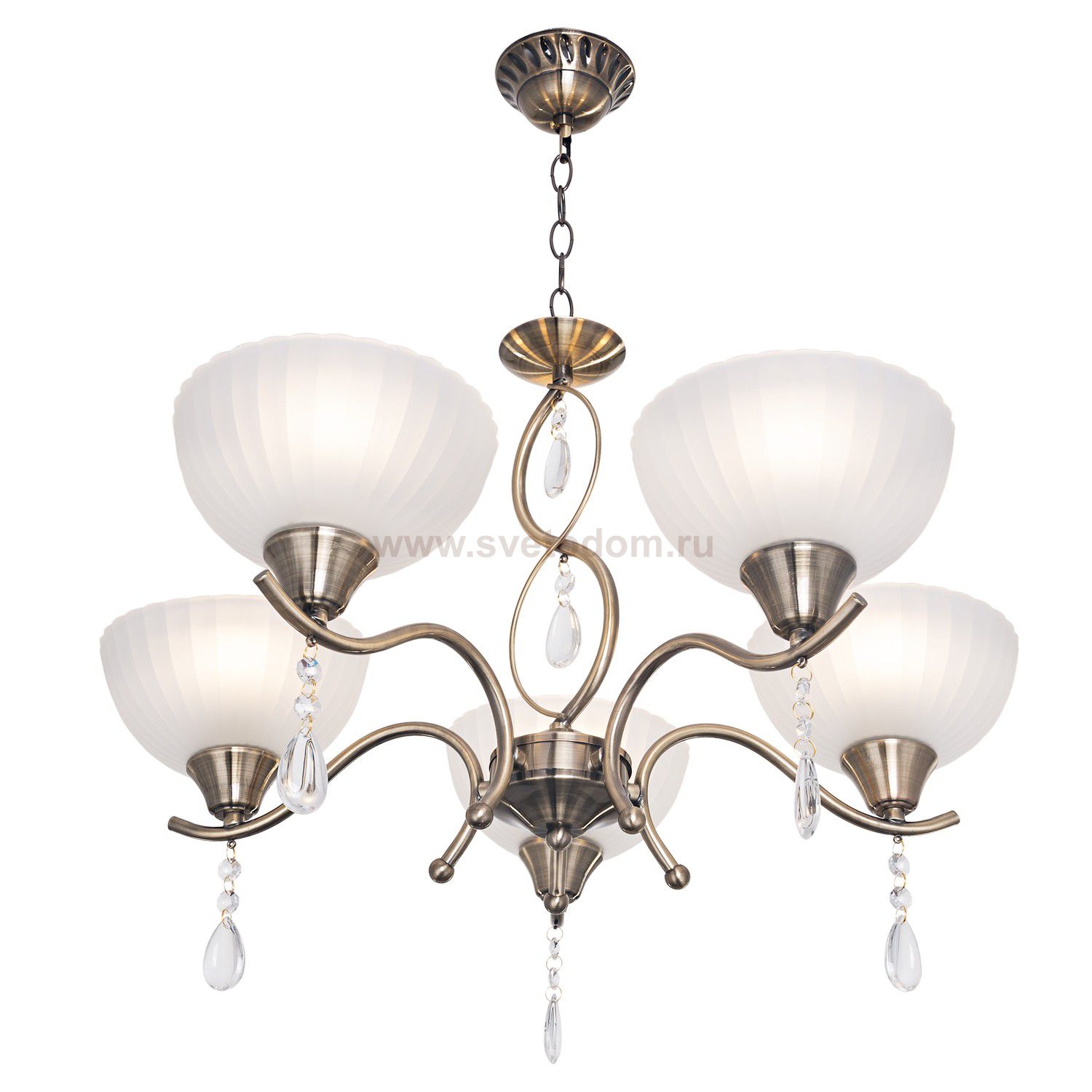 Люстра классическая с хрусталем 6138/5AB WT от бренда ЭкономСвет. Каркас выполнен из материала металл, цвет античная бронза. Плафоны (светорассеиватели) выполнены из материала стекло, цвет белый. Цоколь E27 рассчитан на лампы максимальной мощности до 60 Вт, а максимальная площадь освещения составит до 11 м?.