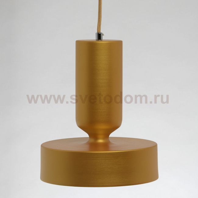 Оригинальный светильник отлично подойдет для зональной подсветки современного интерьера, особенно – в комбинации из нескольких подвесов. Основание и плафон выполнены из металла в благородном цвете сатинового золота. Изнутри плафон окрашен в белый тон, что обеспечивает более яркий свет. Нетривиальные формы и трендовый дизайн подчеркнуты декоративным шнуром в тон основанию.
