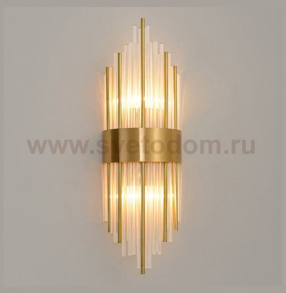 Ширина: 20 см. Высота: 60 см Глубина: 13 см, источник света: E14 (LED ? 6 Вт) х 2 шт, цвет металла - латунь.