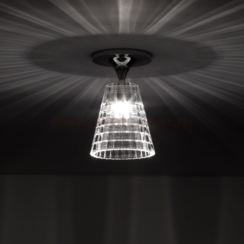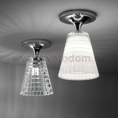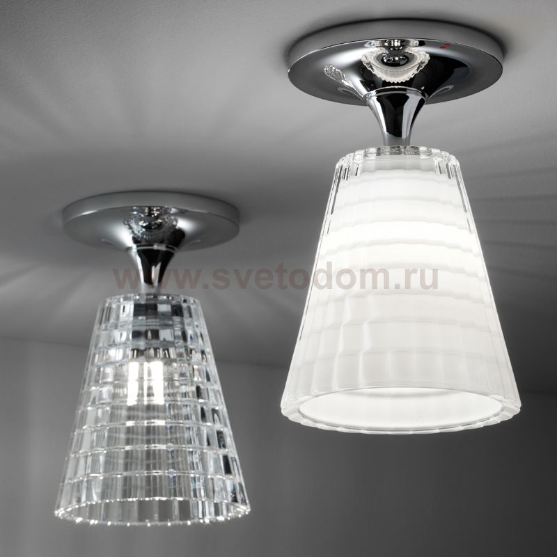 Потолочный светильник Fabbian Flow D87 E01, хромированное основание, прозрачный рассеиватель из муранского стекла.