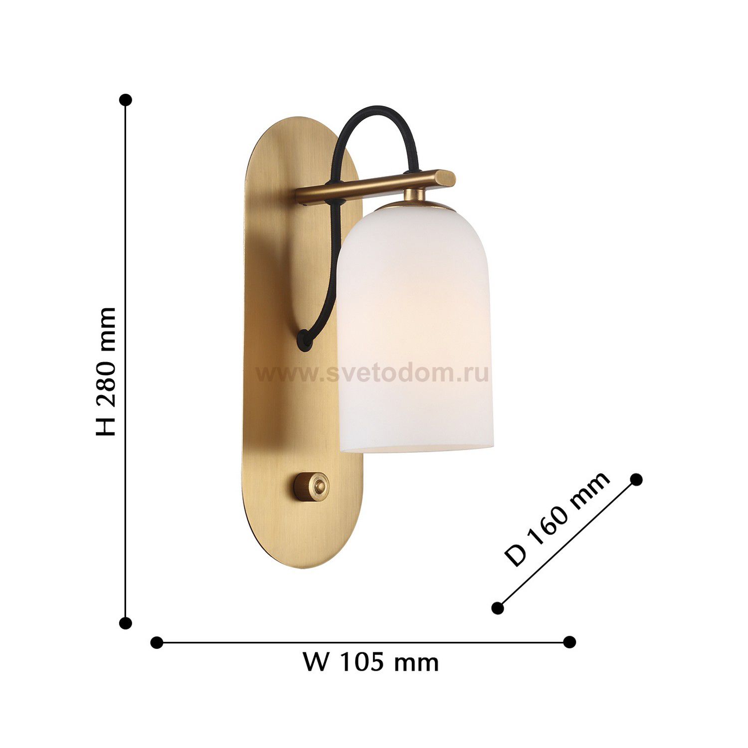 каркас темно-серого цвета и цвета латуни, плафон из белого стекла, управление с помощью диммера Штрих-код