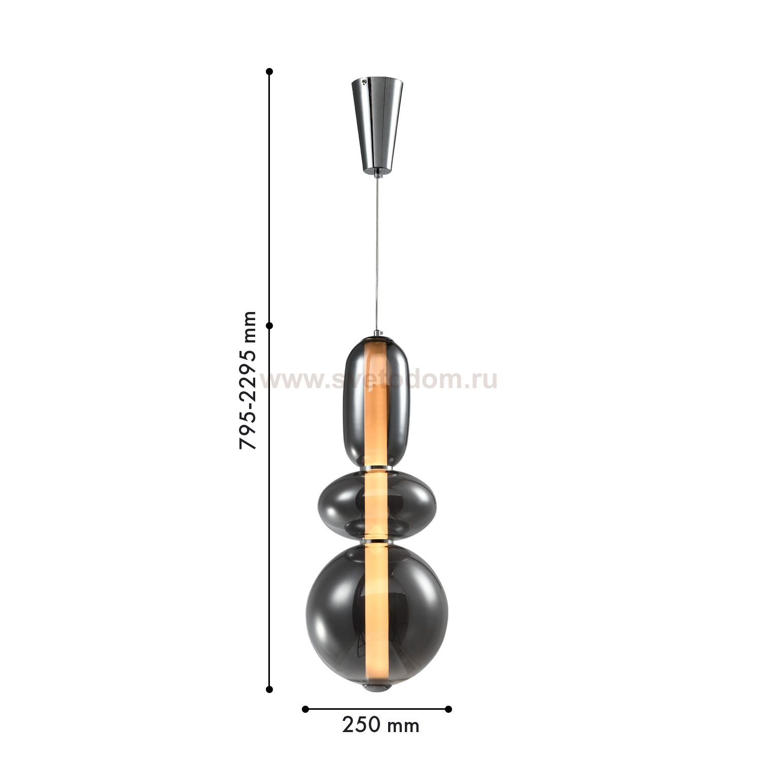 Подвес с дымчато-серым плафоном, стеклянный вытянутый цилиндр, внутри которого скрыта светодиодная лента, проходит через выдувные плафоны, регулируема Серия
