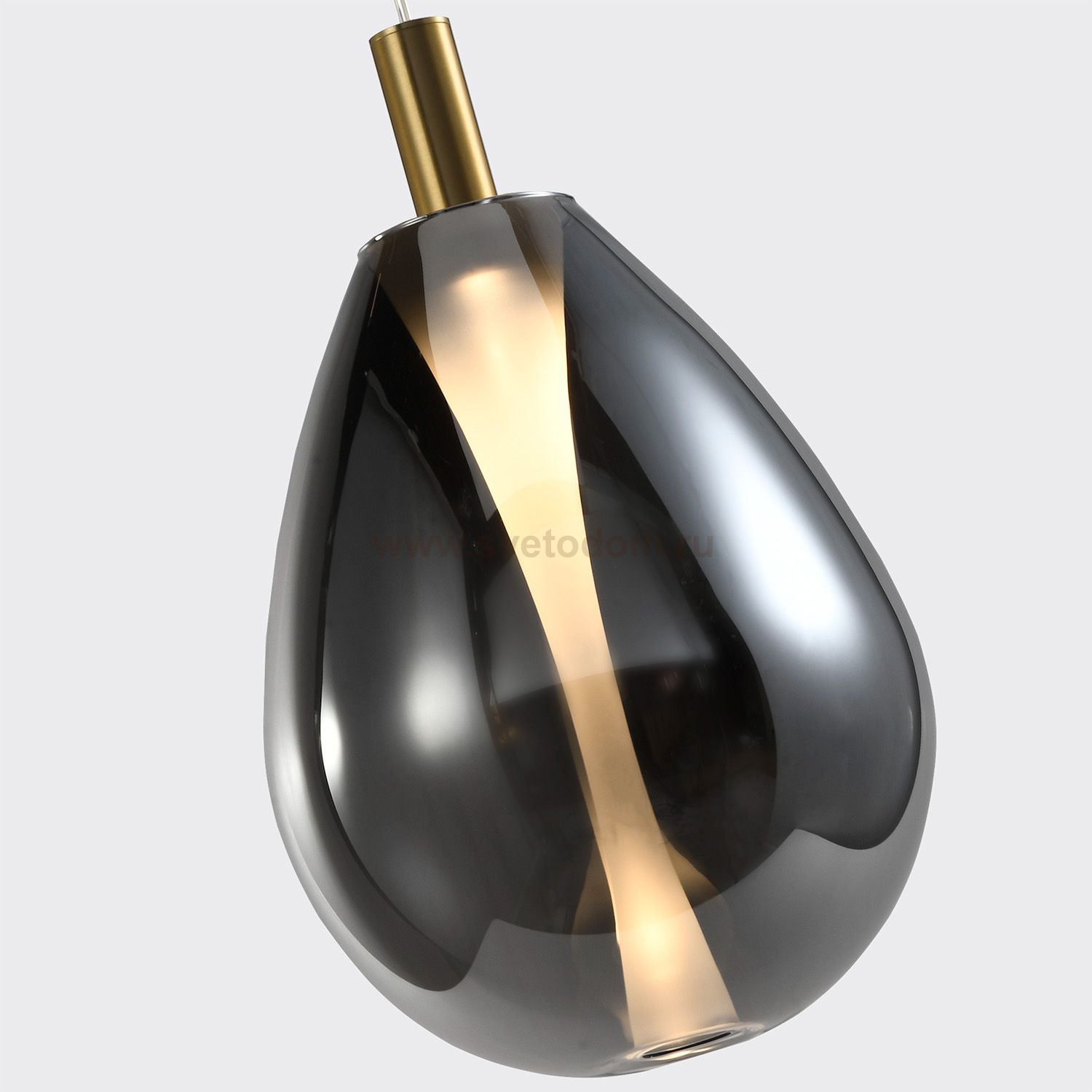 Подвес с декоративным элементом цвета латунь в центре, плафон дымчато-серого цвета подсвечивается изнутри светодиодным источником света, регулируемая Серия