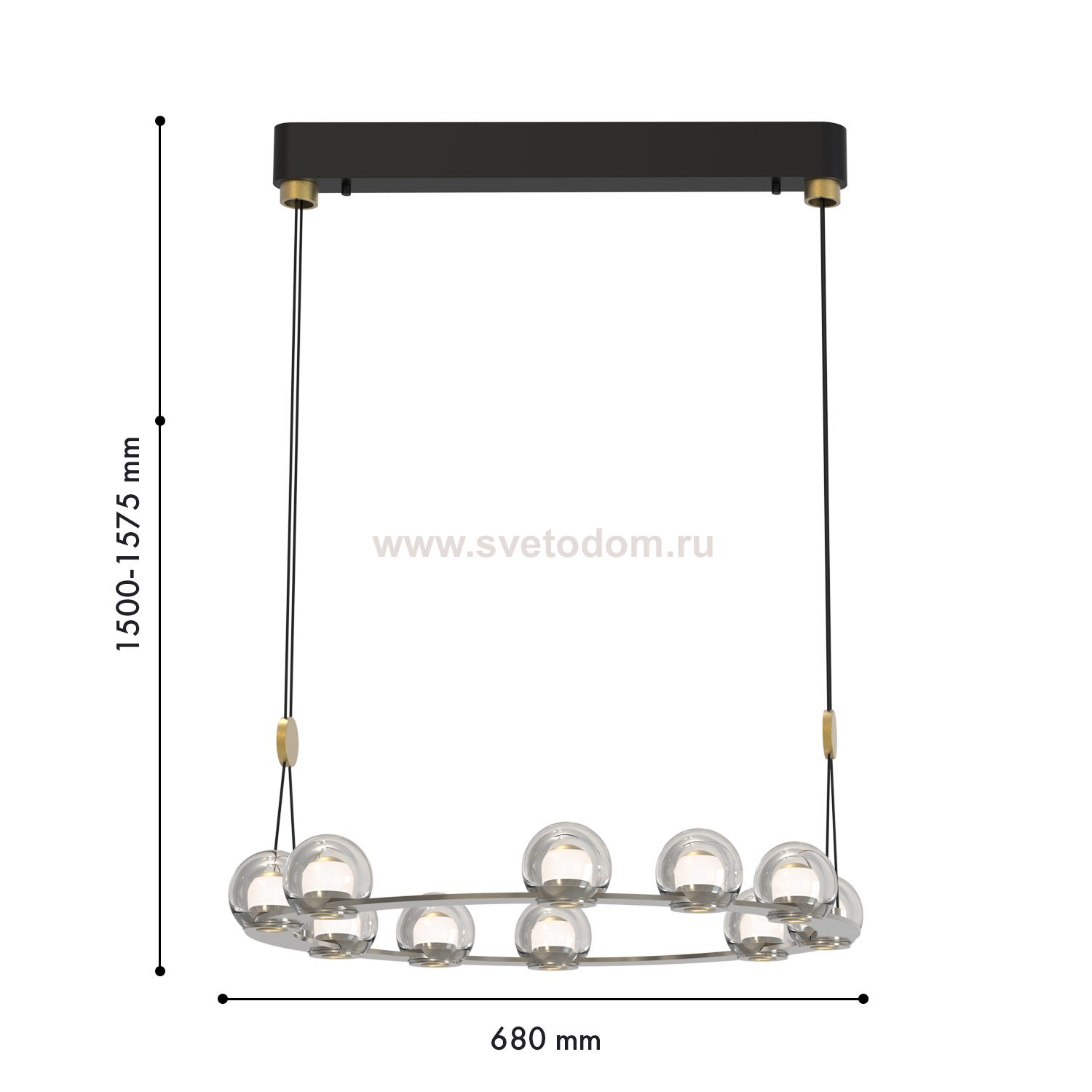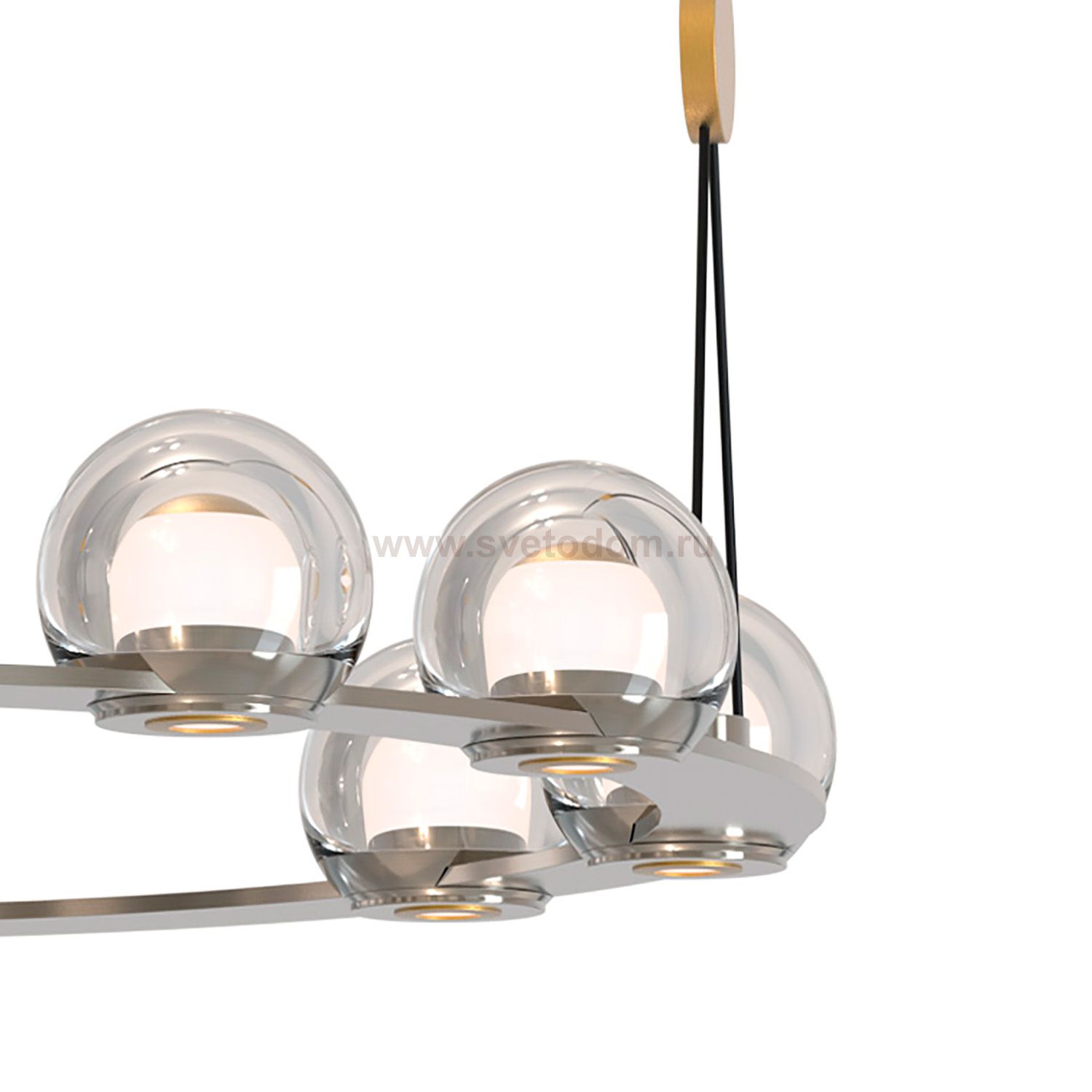 Подвесная люстра с черным каркасом, диаметром 68 см с сферическими плафонами, свет от LED-модуля дает вниз узкий пучок направленного света, в то время Декор