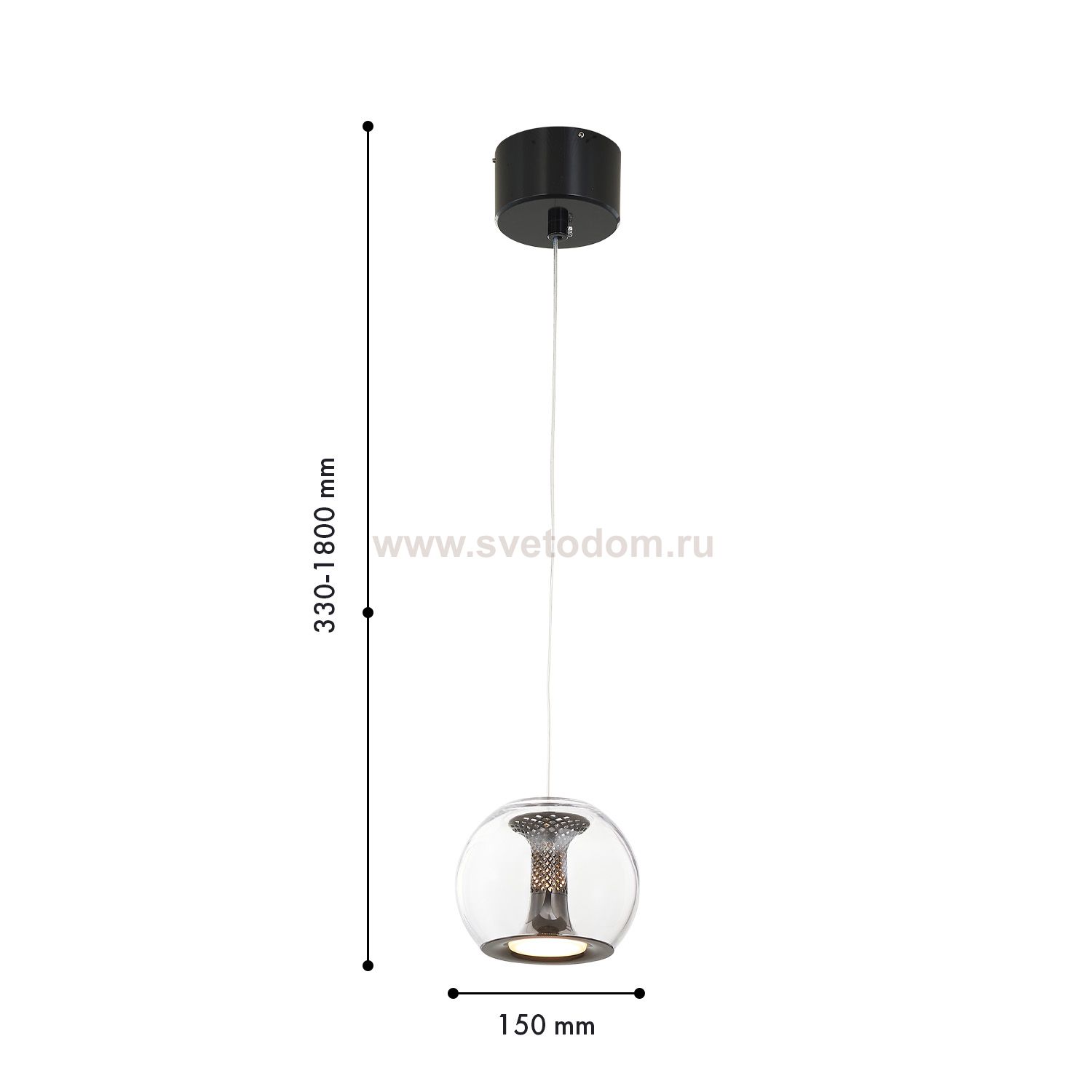Подвес с черным каркасом, диаметром 15 см со стеклянным плафоном в форме воронки в цвете черный хром, скрытый внутри плафона светодиодный источник све Серия