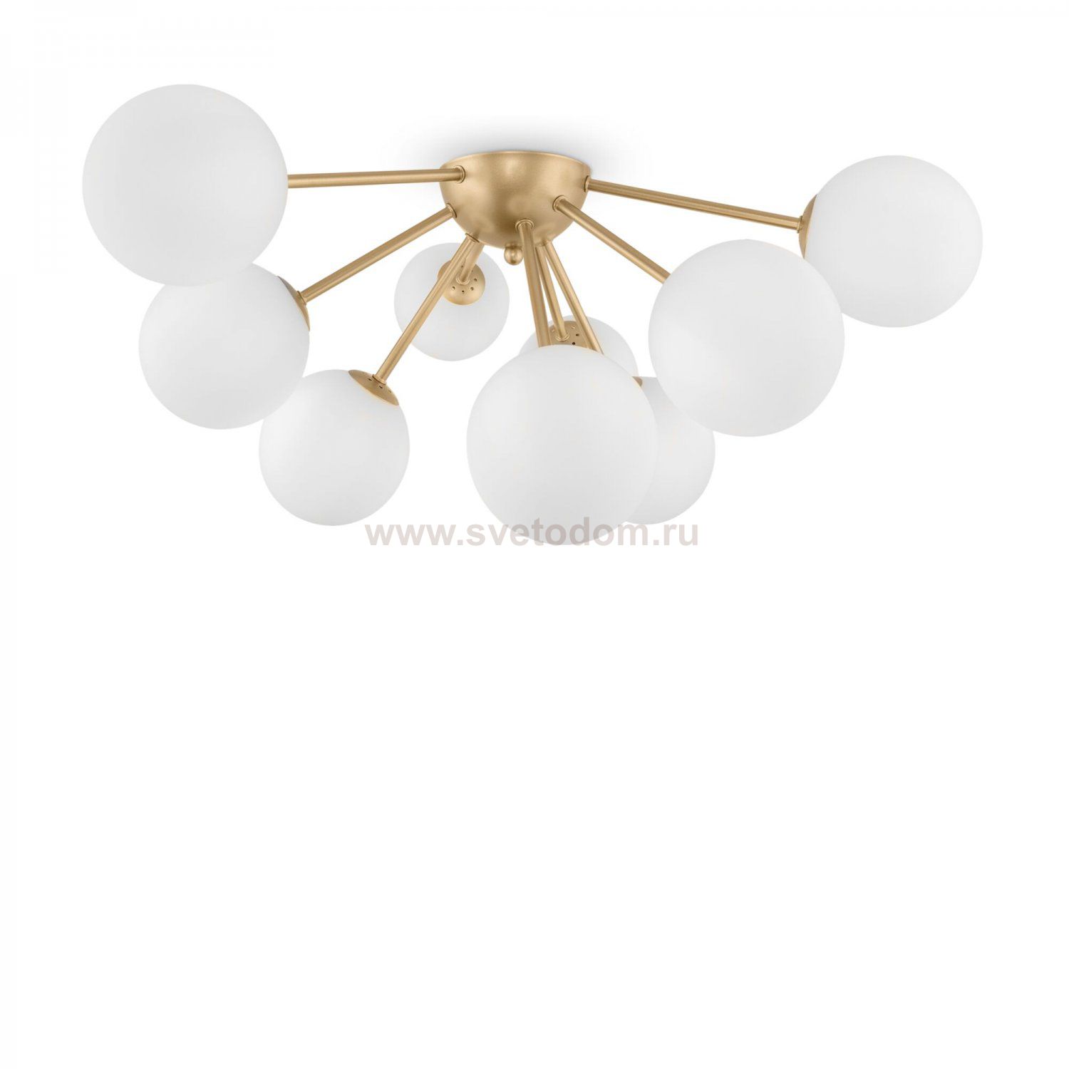 Оригинальная композиция, объединяющая стеклянные плафоны-сферы и металлическую арматуру цвета латуни, актуальна для освещения современных интерьеров Благодаря большому ассортименту серии и наличию в ней люстр различного диаметра и высоты, каждый сможет выбрать светильник необходимых размеров. Разнообразие конструктивных решений также не оставляет равнодушным: ассиметричные светильники и модели с дугообразными рожками-лучами займут достойное место в любой обстановке. Люстры на 12, 9 и 6 плафонов позволяют подобрать оптимальную яркость и мощность подсветки, исходя из размеров помещения.