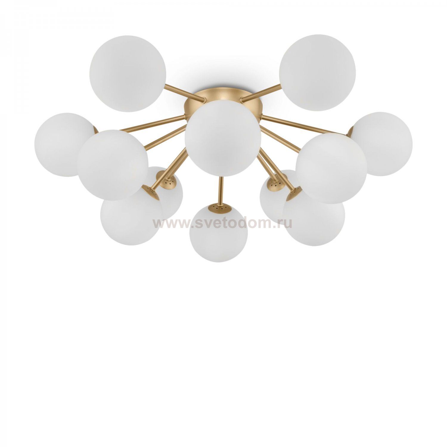 Оригинальная композиция, объединяющая стеклянные плафоны-сферы и металлическую арматуру цвета латуни, актуальна для освещения современных интерьеров Благодаря большому ассортименту серии и наличию в ней люстр различного диаметра и высоты, каждый сможет выбрать светильник необходимых размеров. Разнообразие конструктивных решений также не оставляет равнодушным: ассиметричные светильники и модели с дугообразными рожками-лучами займут достойное место в любой обстановке. Люстры на 12, 9 и 6 плафонов позволяют подобрать оптимальную яркость и мощность подсветки, исходя из размеров помещения.
