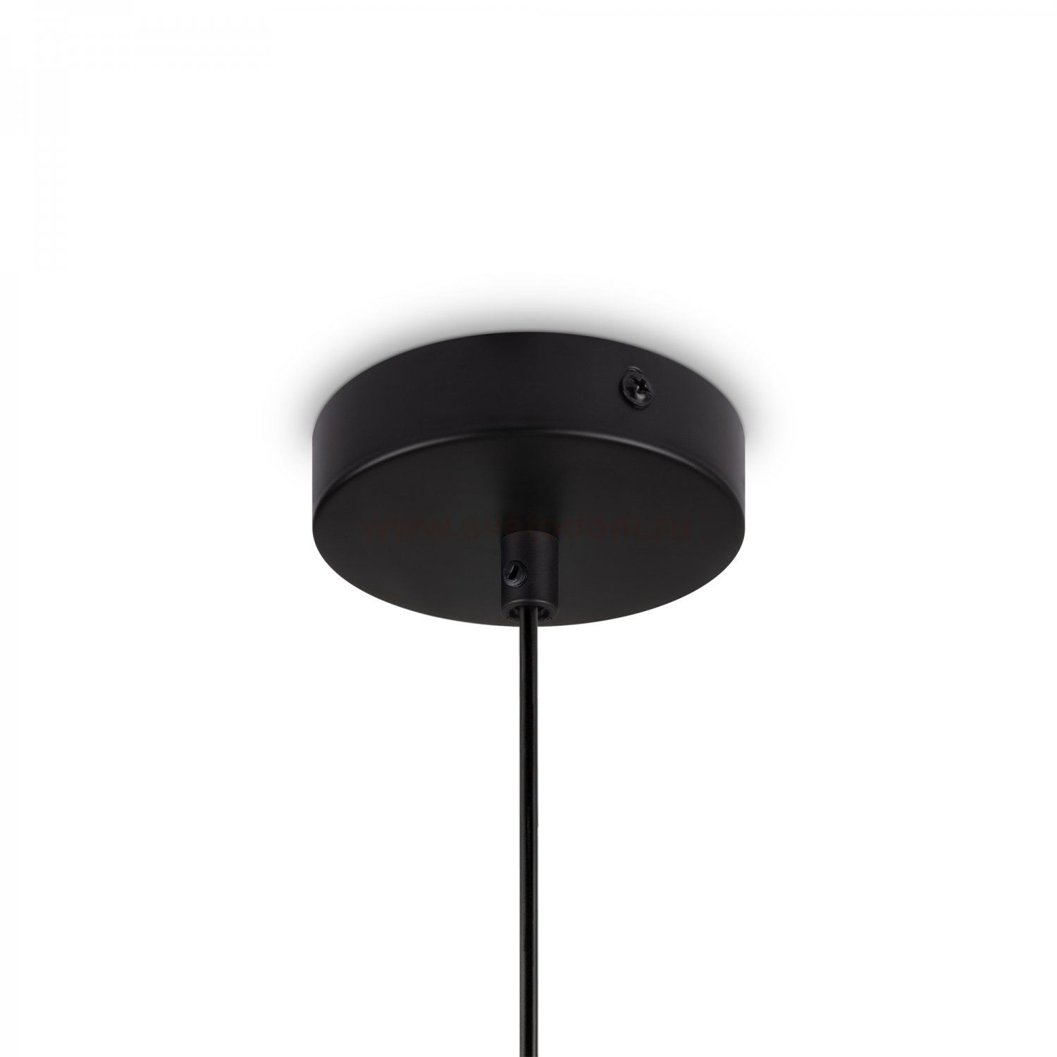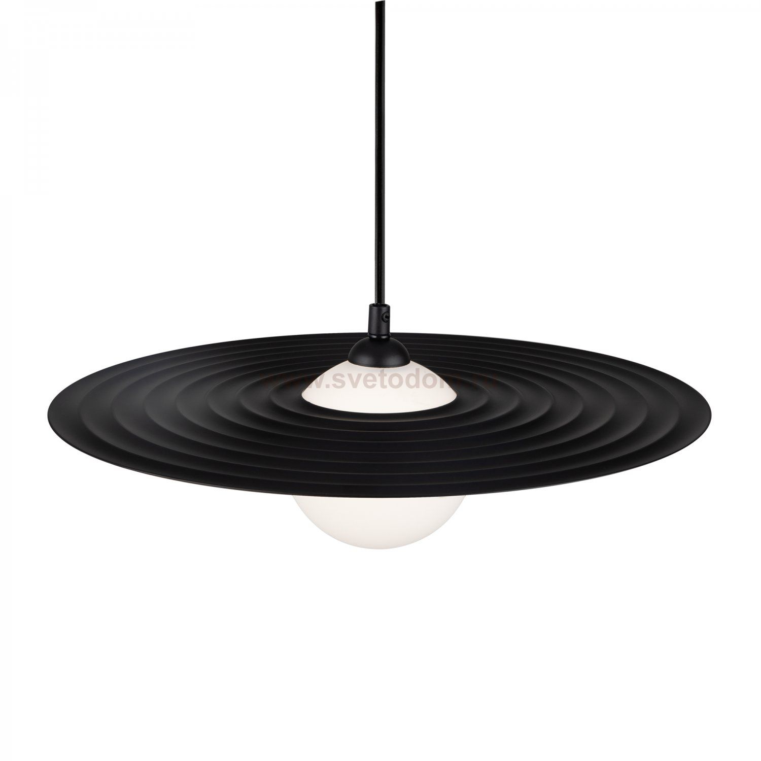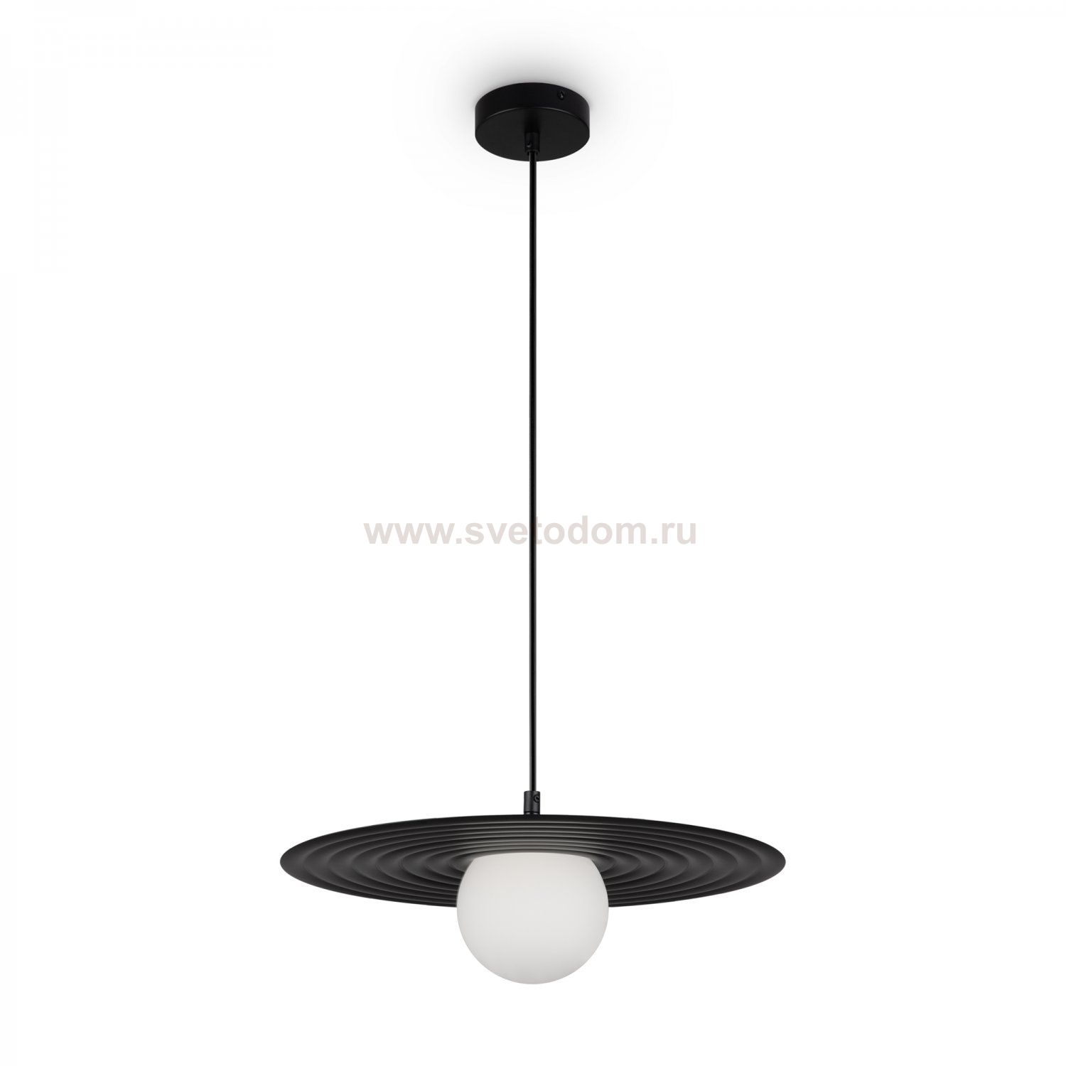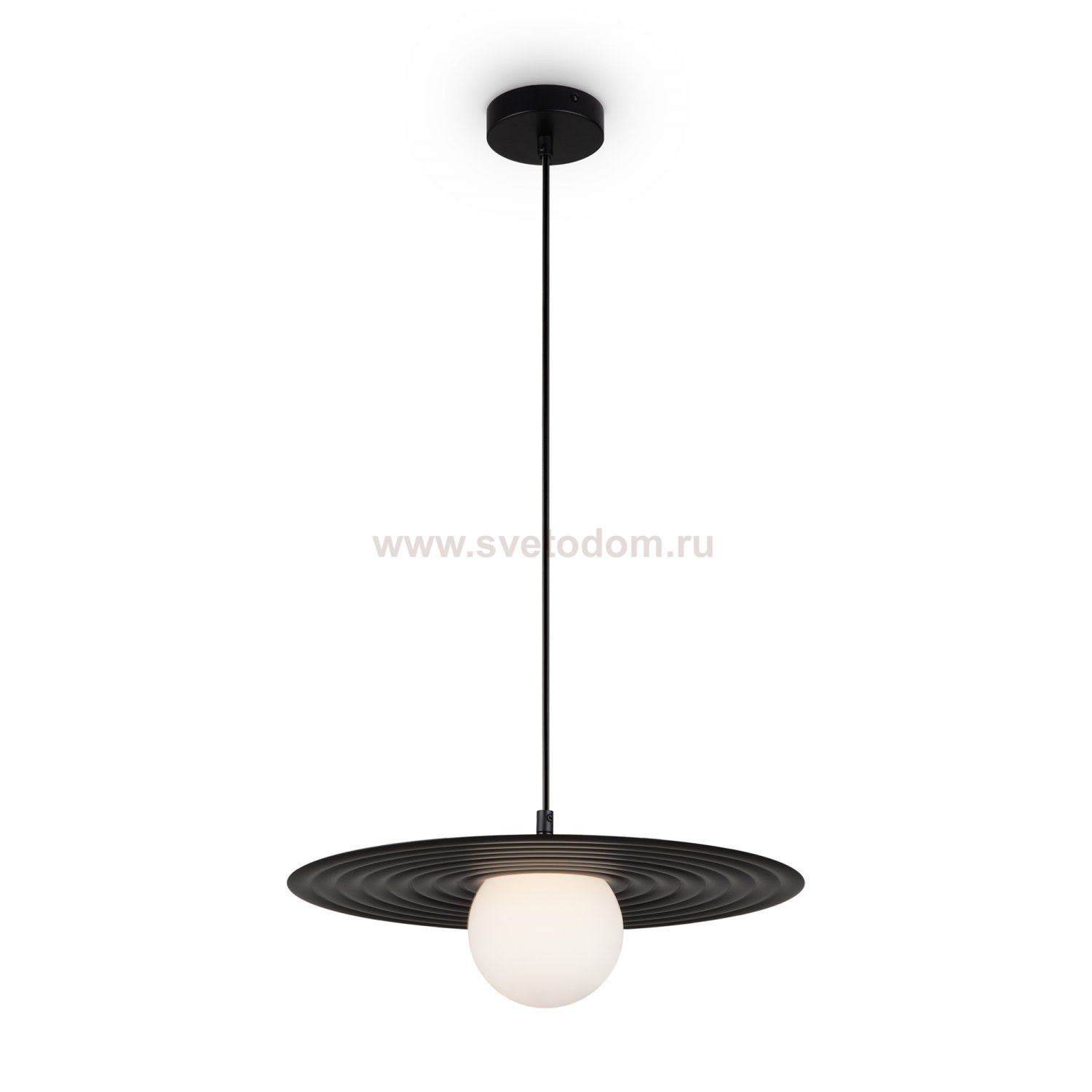 Арматура — металл, цвета — чёрный и белый. Матовый белый плафон с декоративным элементом — металлической тарелкой. Можно регулировать минимальную и максимальную высоту. Лампа с цоколем G9 служит источником света.