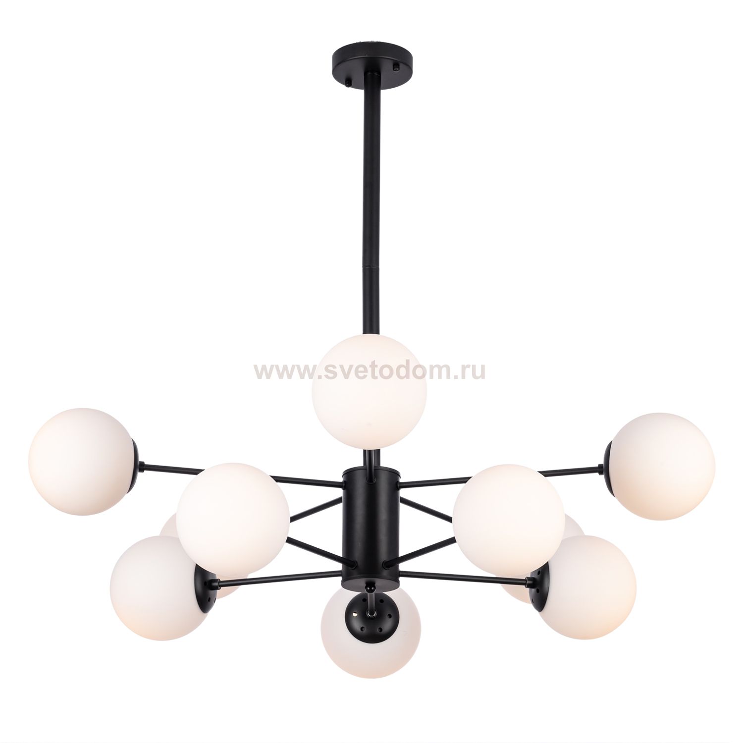 Потолочная люстра G21026/10BK от бренда Gerhort. Каркас выполнен из материала металл, цвет черный. Плафоны (светорассеиватели) выполнены из материала стекло, цвет белый. Цоколь E27 рассчитан на лампы максимальной мощности до 40 Вт, а максимальная площадь освещения составит до 22 м?.