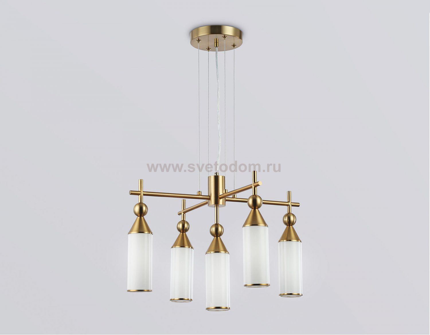 Подвесная люстра из коллекции HIGH LIGHT. Модель LH55276 представлена в стиле модерн. Люстра выполнена из плафонов белого матового стекла и металлического каркаса цвета латунь. Для данной модели подойдут лампы с цоколем Е14. Люстра будет прекрасным дополнением в любом помещении.