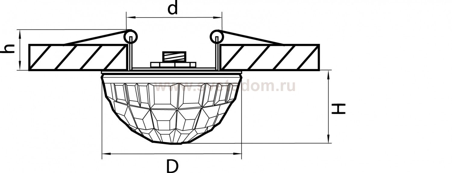 Данный размер указывает какое отверстие необходимо сделать для правильного монтажа. Зачастую светильники выбирают после ремонта и сделанных монтажных отверстий, тогда подбор осуществляется строго в размер +/- 2-5мм.