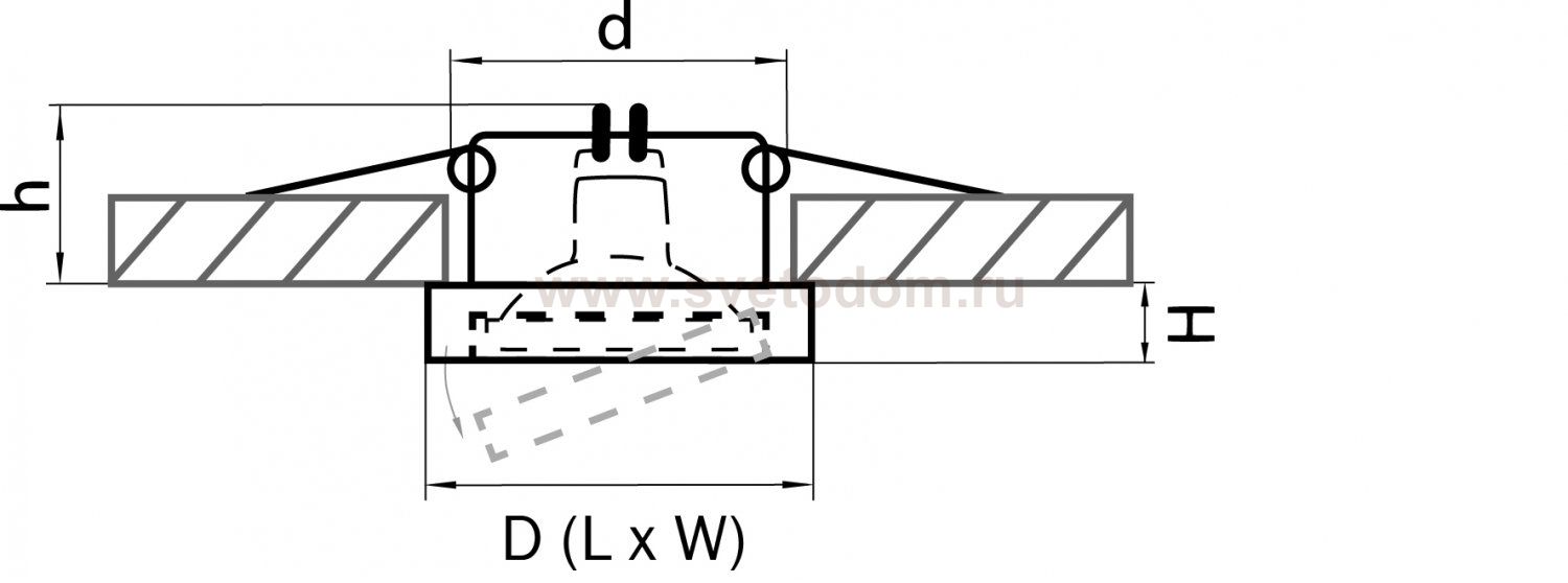 Данный размер указывает какое отверстие необходимо сделать для правильного монтажа. Зачастую светильники выбирают после ремонта и сделанных монтажных отверстий, тогда подбор осуществляется строго в размер +/- 2-5мм.