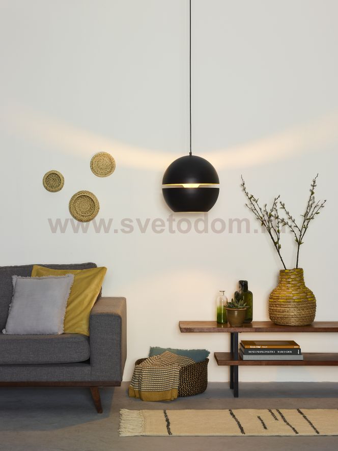 Binari is a hanging lamp for fans of balance, interplanetary shapes and a modern design. This hanging lamp can easily fit in an interior magazine, but – perhaps even better – also in your dining room, kitchen, living room or bedroom. Binari can be used in different ways. This version has a diameter of 35 centimetres, but it is also available as a smaller model. You choose the dimensions, of course, on the basis of your own interior. And whether that interior is minimalistic, cutting-edge or just modern does not matter. This pendant lamp is like a planet that feels at home anywhere. Certainly thanks to the fine distribution of light and the golden glow with the satin lacquer on the inside.
