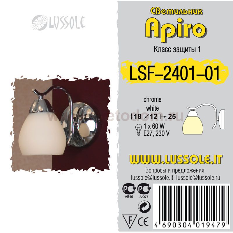 В интернет-магазине «Светодом» представлен широкий выбор настенных бра по привлекательной цене. Это качественные товары от популярных мировых производителей. Благодаря большому ассортименту Вы обязательно подберете под свой интерьер наиболее подходящий вариант. Оригинальное настенное бра Lussole LSF-2401-01 можно использовать для освещения не только гостиной, но и прихожей или спальни. Модель выполнена из современных материалов, поэтому прослужит на протяжении долгого времени. Обратите внимание на технические характеристики, чтобы сделать правильный выбор. Чтобы купить настенное бра Lussole LSF-2401-01 в нашем интернет-магазине, воспользуйтесь «Корзиной» или позвоните менеджерам компании «Светодом» по указанным на сайте номерам. Мы доставляем заказы по Москве, Екатеринбургу и другим российским городам. |