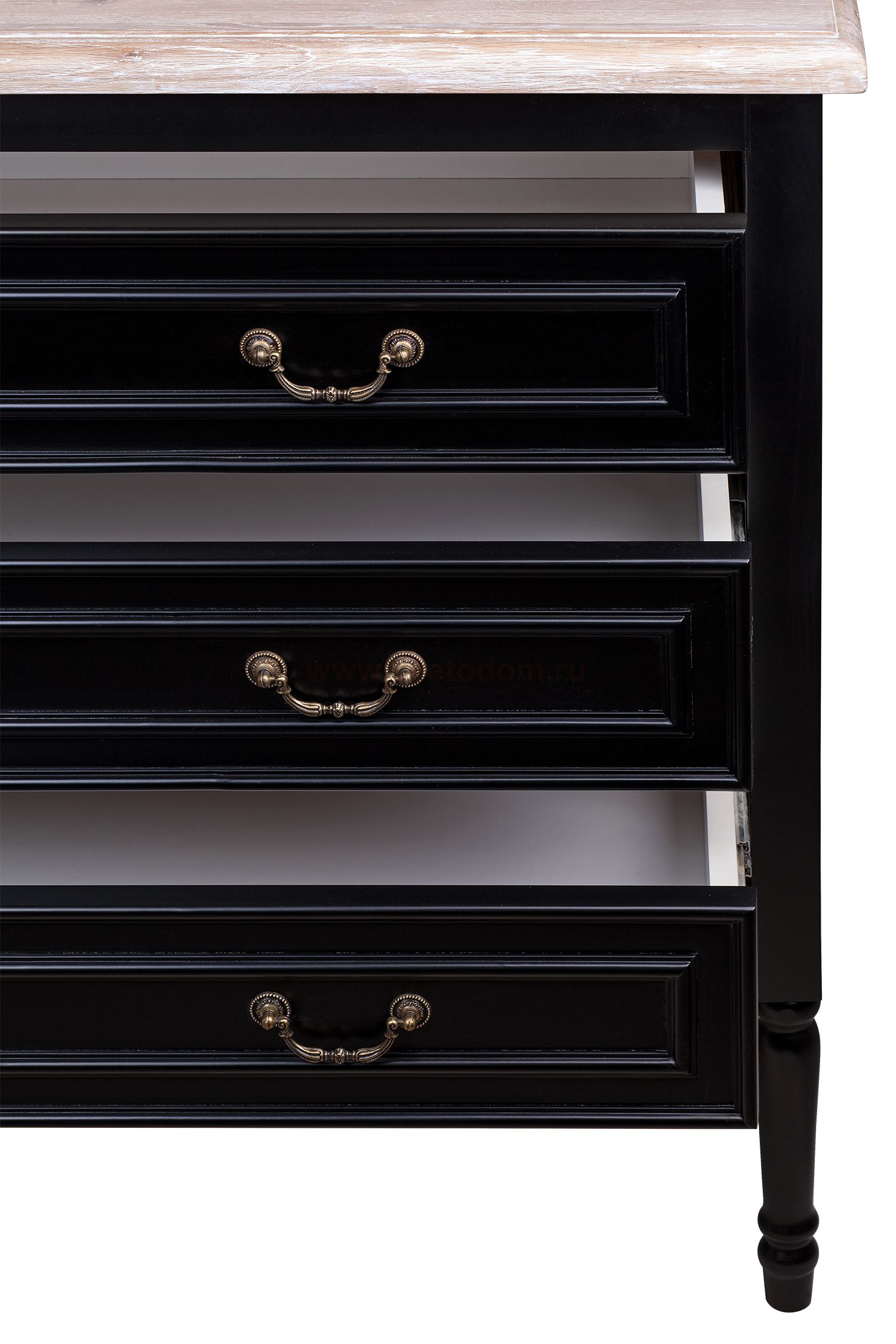 Черный комод из дуба Kaliko old oak отличается вместительностью за счет своих трех больших выдвижных ящиков. Столешница комода c эффектом состаренного дуба , а сам комод имеет глубокий черный цвет. Он привнесет в интерьер любого стиля функциональность и несомненно украсит любое помещение своим грациозным видом.
