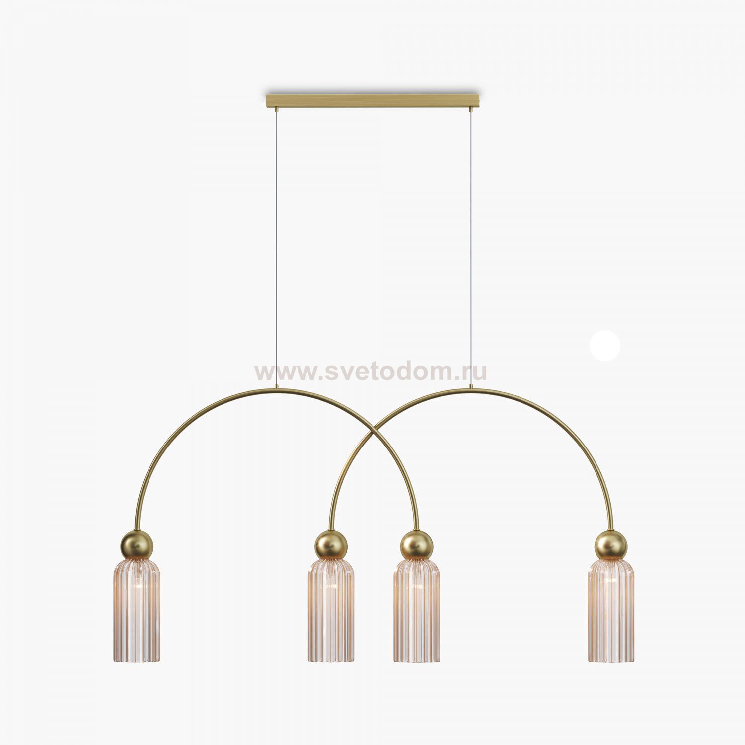 Металлическая арматура в цвете золота.Стеклянные плафоны нескольких цветов: коньячный, белый, серый. Рифленая поверхность стекла усиливает световые эффекты. Источник света: цоколь Е14 и G9. Высота подвесных светильников регулируется сегментами штанги или с помощью трехметрового провода. Серия может использоваться в помещениях с высокими потолками. Доступны подвесные и настенные модели для создания разнообразных световых композиций.