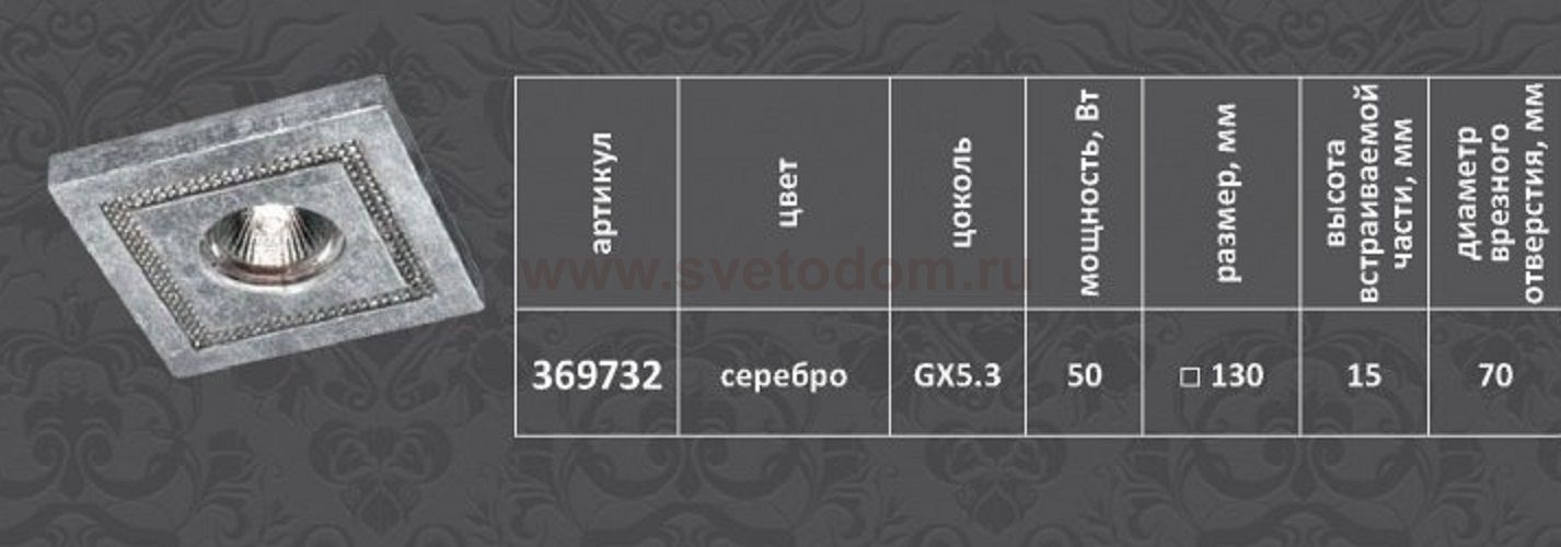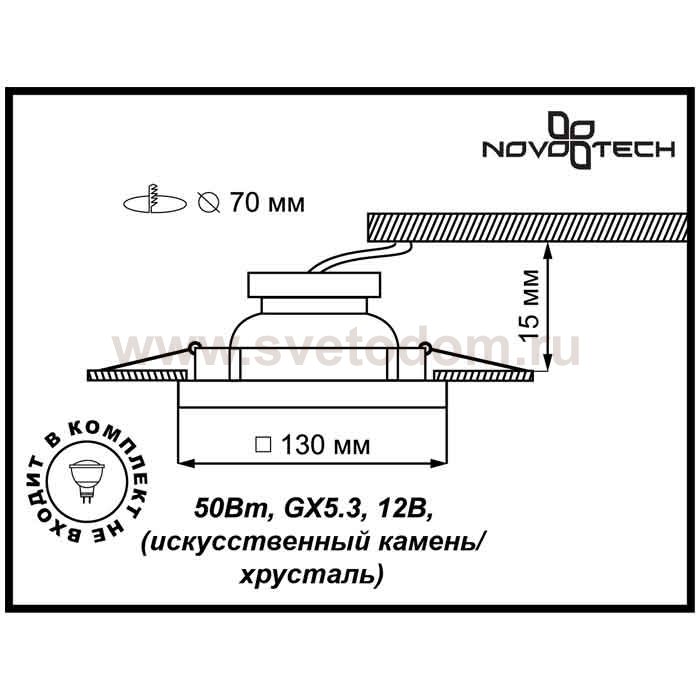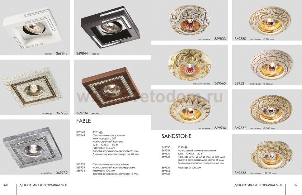 Декоративный встраиваемый светильник модели Novotech 369732 из серии FABLE отличается следующим качеством: Светильник сделан из искусственного камня. Этот материал отличается, без преувеличения, уникальными эксплуатационными качествами. Он прочный и долговечный, влагоустойчивый, гигиеничный (на гладкой поверхности бактерии не приживаются), термостойкий, экологичный и лёгкий. А так же тёплый на ощупь. Декоративное украшение произведено из хрусталя. Он обладает высоким показателем плотности, прозрачности и блеска. Благодаря содержанию свинца (не менее 30%) и определённому подбору углов, образуемых гранями, изделия из хрусталя отличаются необыкновенно яркой, многоцветной игрой света, чарующей магией красоты, совершенства и роскоши.