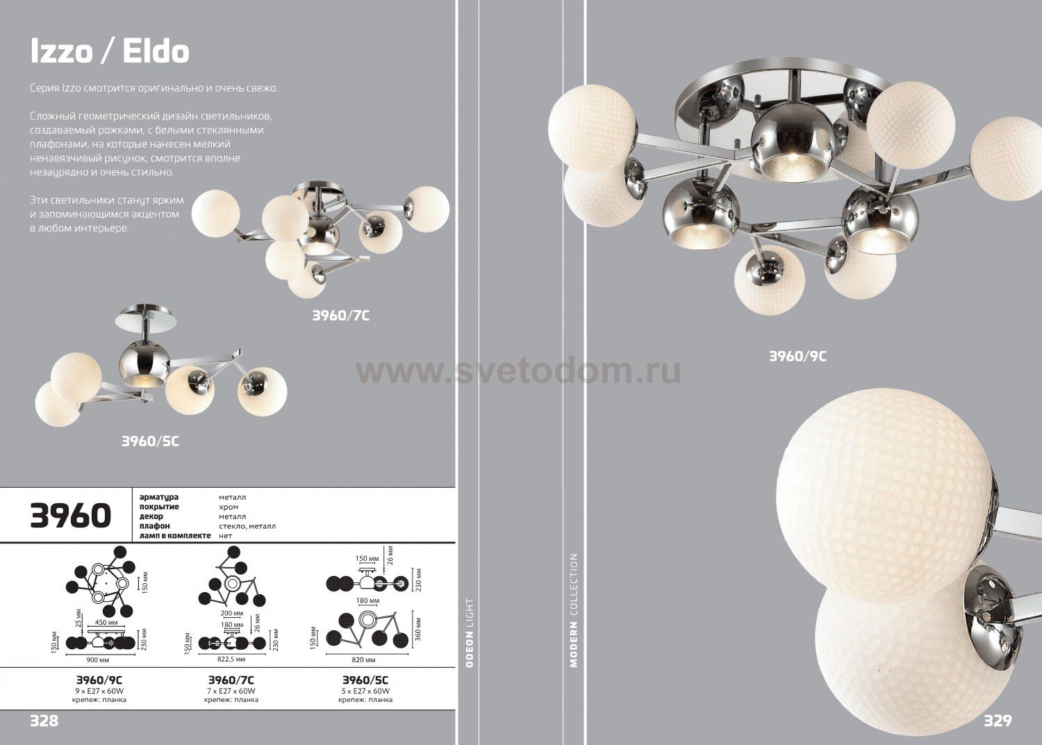 Люстра 3960 / 5C линии Izzo смотрится оригинально и очень свежо. Сложный геометрический дизайн люстры, создаваемый рожками, с белыми стеклянными плафонами, на которых нанесен мелкий ненавязчивый рисунок, смотрится вполне незаурядно и очень стильно. Эта люстра станет ярким и запоминающимся акцентом в любом интерьере. Цоколь E27. Мощность 5*60W. Нет ламп в комплекте.