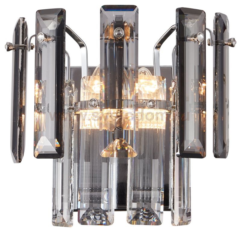 Светильник настенный Stilfort 2159/09/02W серии Ton выполнен в стиле Модерн. Изготовлен из сплава металла, гальванизированного в цвет Хром" и декорирован хрусталем. Хрусталь по внешнему диаметру дымчатого цвета, по внутреннему - прозрачный."