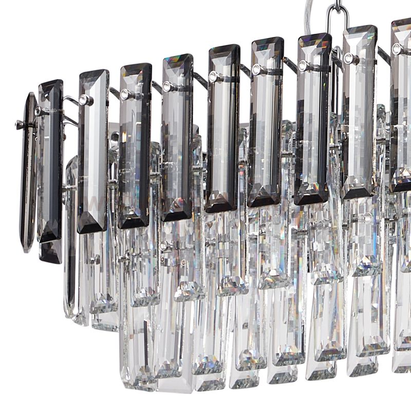 Люстра подвесная Stilfort 2159/09/12PL серии Ton выполнена в стиле Модерн. Изготовлена из сплава металла, гальванизированного в цвет Хром" и декорирована хрусталем. Хрусталь по внешнему диаметру дымчатого цвета, по внутреннему - прозрачный."