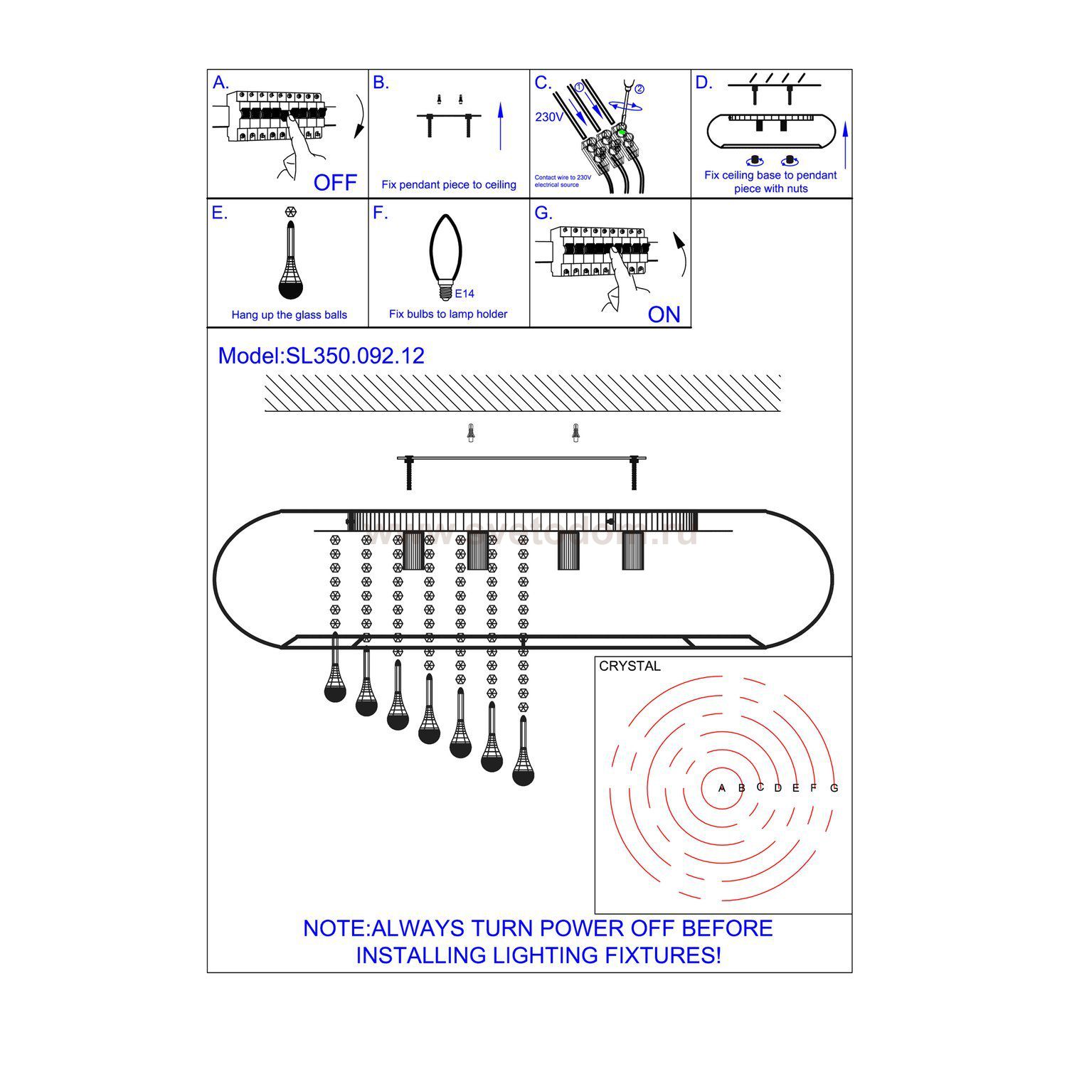 Касаемо коллекции модели St luce SL350.092.12 хотелось бы отметить основные моменты: Preferita-коллекция люстр в стиле арт-деко с тканевыми абажурами в богатой цветовой палитре. Основания светильников выполнены из металла с хромированным покрытием. В абажурах используется специально обработанный жатый шелк, который не рвется и стоек к воздействию температур. Элегантность колекции подчеркивают прозрачные стеклянные подвески каплевидной формы, которые особенно гармонируют с округлой формой абажуров.