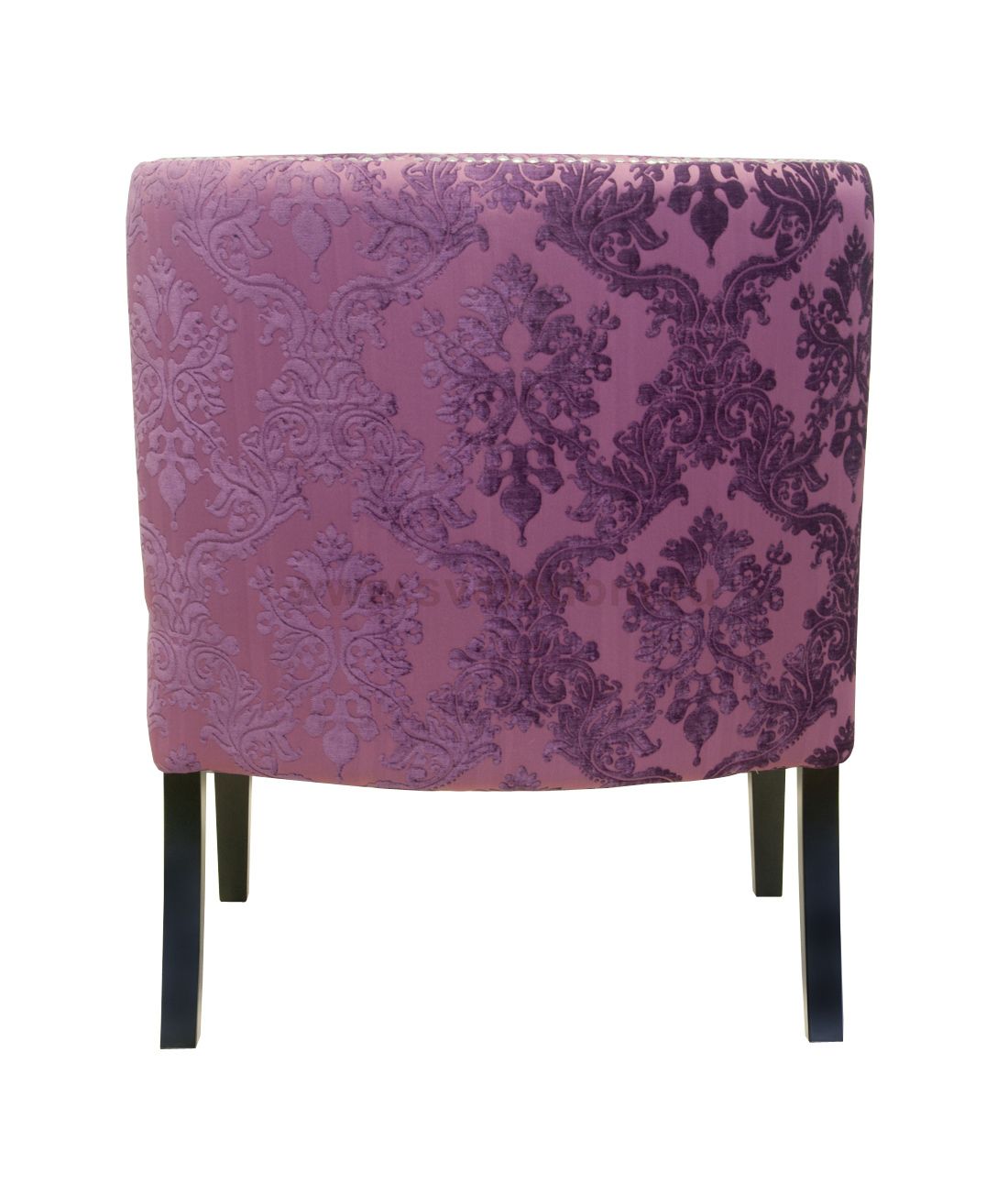 Кресло Suza сиреневого цвета, без подлокотников, с деревянными ножками и прямой, слегка наклоненной назад спинкой. Каркас выполнен из массива березы, для изготовления обивки использована натуральная льняная ткань. Серебристые заклепки служат эффектным украшением модели, широкое сиденье обеспечивает удобное расположение тела, снижает нагрузку на позвоночник.