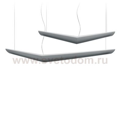 Подвесной светильник на регулируемых тросах . Рассеиватель из термопластика. Балласты и лампы находятся в теле светильника. Возможны 2 варианта : симметричные и ассиметричные. Светильник комплектуется лампами.