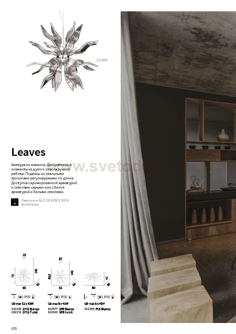 70 Отзывы Подвесной светильник Ideal lux LEAVES SP8 FUME'Пока нет отзывов об этом товаре, напишите и он обязательно появится после модерации! Оставить свой отзывПохожие товары Другие товары магазина Фото