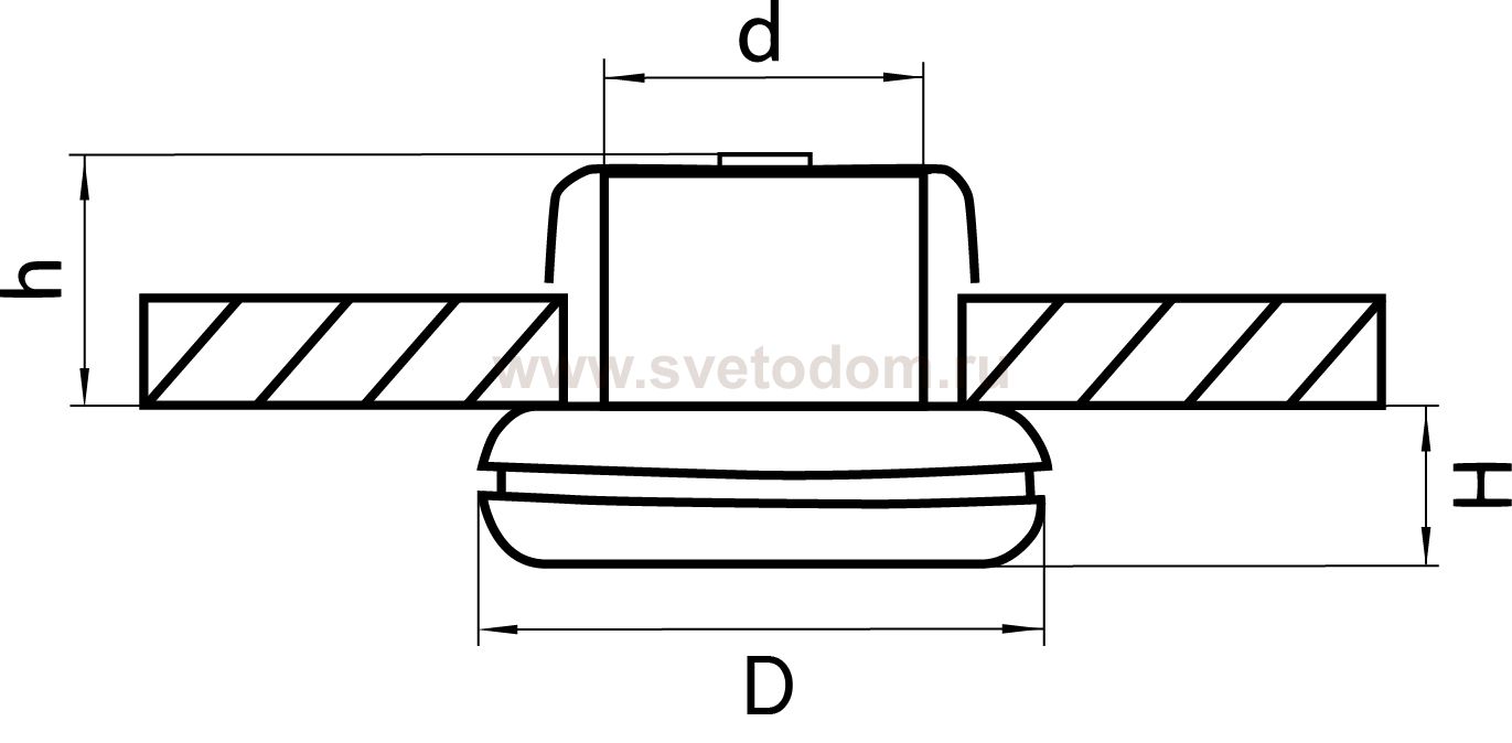 Данный размер указывает какое отверстие необходимо сделать для правильного монтажа. Зачастую светильники выбирают после ремонта и сделанных монтажных отверстий, тогда подбор осуществляется строго в размер +/- 2-5мм.