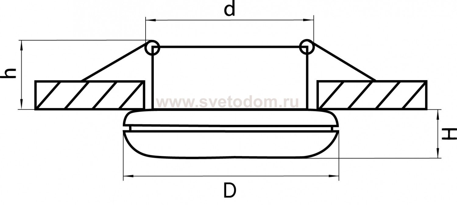 Данный размер указывает какое отверстие необходимо сделать для правильного монтажа. Зачастую светильники выбирают после ремонта и сделанных монтажных отверстий, тогда подбор осуществляется строго в размер +/- 2-5мм.