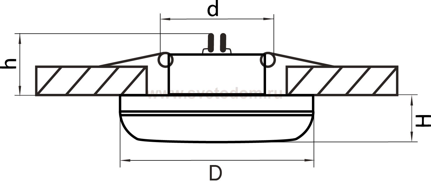 Данный размер указывает какое отверстие необходимо сделать для правильного монтажа. Зачастую светильники выбирают после ремонта и сделанных монтажных отверстий, тогда подбор осуществляется строго в размер +/- 2-5мм.