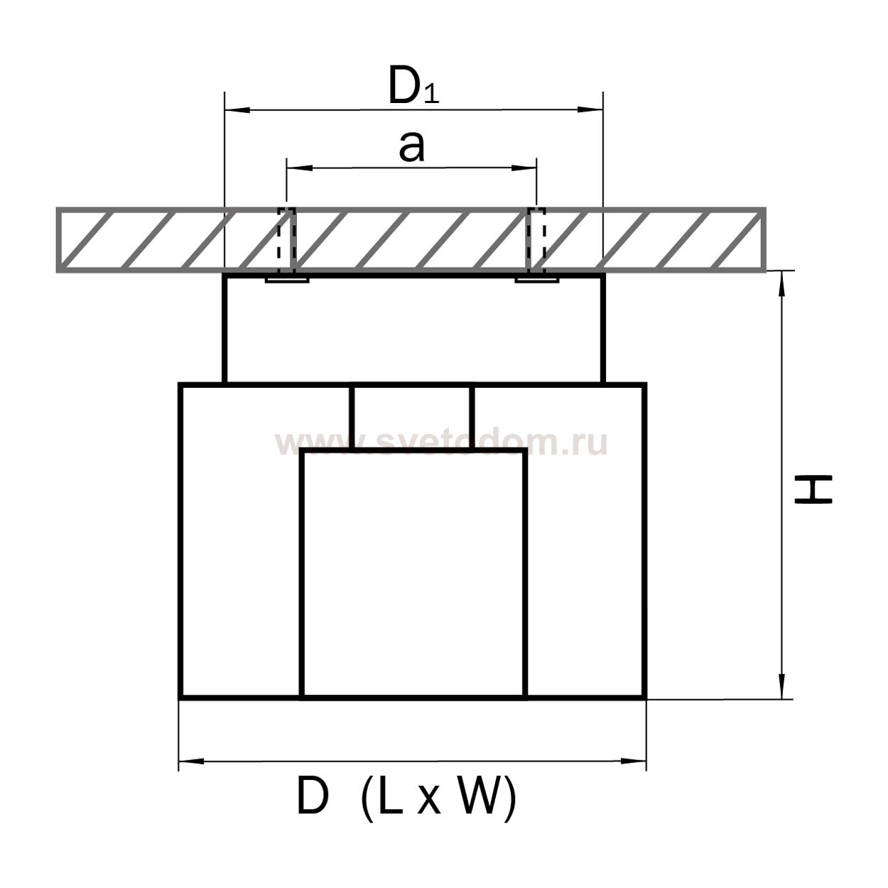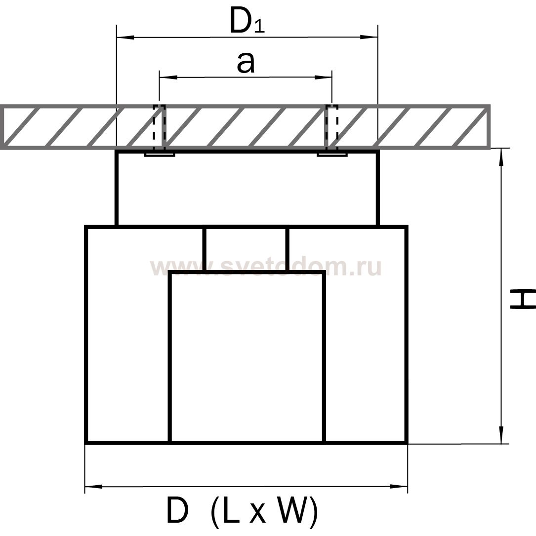 Данный размер указывает какое отверстие необходимо сделать для правильного монтажа. Зачастую светильники выбирают после ремонта и сделанных монтажных отверстий, тогда подбор осуществляется строго в размер +/- 2-5мм.