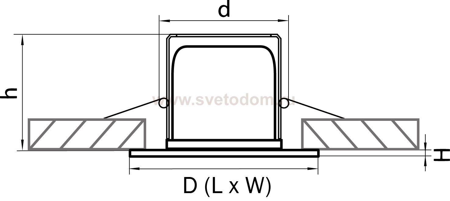 Данный размер указывает какое отверстие необходимо сделать для правильного монтажа. Зачастую светильники выбирают после ремонта и сделанных монтажных отверстий, тогда подбор осуществляется строго в размер +/- 2-5мм.